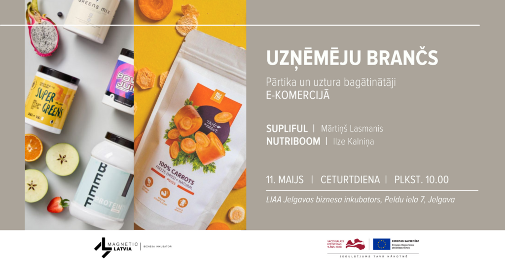 Jelgavas biznesa inkubatora vecākā projektu vadītāja Anna Rožkova atklāja, pasākuma laikā uzņēmēji runās par dažādiem e-komercijas biznesa aspektiem pārtikas nozarē, atklās galvenos izaicinājumus un pieļautās kļūdas, pārdodot produkciju tiešsaistē. Savā pieredzēs dalīsies: Mārtiņš Lasmanis no “SUPLIFUL” (uztura bagātinātāji pēc individuāla pasūtījuma) un Ilze Kalniņa no “NUTRIBOOM” (veselīgas augu valsts izcelsmes uzkodas ar augstu uzturvērtību).