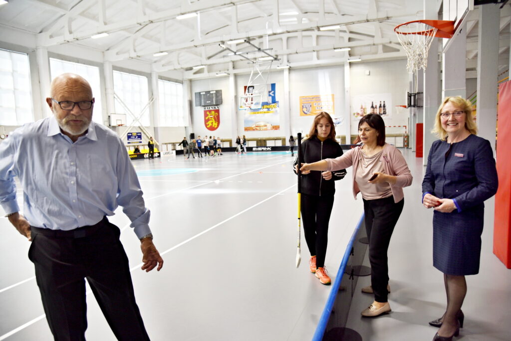 Sporta namā «Mēmele» ieradās arī Artūrs Dulbe, kas ir ne tikai Bauskas novada domes sabiedrisko attiecību speciālists, bet arī Latvijas Florbola virslīgas komandas «Bauska» spēlētājs un varēja pastāstīt par seguma nozīmi šajā sporta veidā. M. Putenis atzina, ka savulaik aizrāvies ar volejbolu un izpratne par florbolu viņam esot maza, bet pats tomēr izmēģināja nedaudz – kā tas ir, pabūt uz laukuma ar nūju un bumbiņu.