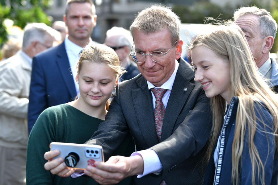 – Gan pirms, gan pēc ievēlēšanas man bieži jautāja – vai es būšu tautas prezidents. Vienmēr atbildēju un arī tagad varu atkārtot, ka esmu ļoti uzmanīgs un piesardzīgs ar augstiem saukļiem. Apzinos, ka cilvēki ļoti daudz gaida no katra jauna Valsts prezidenta, no katras jaunas Saeimas un valdības, un, protams, pēc kāda laika ir zināma vilšanās. Es teiktu tā – jā, esmu priecīgs, ka cilvēki novērtē šīs aktivitātes. Interesanti, ka bieži vien dažādi eksperti un žurnālisti domā, ka tā ir tikai un vienīgi PR (sabiedrisko attiecību – red.) stratēģija, taču tā nav. Esot ārpus Rīgas, tiekoties un uzklausot cilvēkus, sarunas bieži vien nemaz nav vieglas un vienkāršas. Šīs vizītes nenozīmē tikai uztaisīt selfiju vai kopbildi un uzklausīt labus vārdus. Ir jādzird arī praktiskas, konkrētas un ne tik labas lietas. Cilvēki bieži vien ir sašutuši par to, ka inflācija aug, tarifi kāpj, pensijas mazas… Ir divas lietas, ko prezidenta amatā uzskatu par ļoti būtiskām. Pirmā – uzklausīt cilvēkus. To arī vienmēr daru un saku, ka nesolu un negaidiet, ka es strādāšu valdības vai Saeimas vietā, bet es varu mudināt, aicināt, pieskatīt, «nekāpt nost» no tādas vai citādas tēmas. Otrā – atcerēties, ka Valsts prezidents reprezentē Latviju ne tikai starptautiski, bet ir arī valsts simbols savas zemes pilsoņiem, tāpēc ir ļoti svarīgi dot iespēju cilvēkiem mani satikt un izklāstīt savas problēmas. Tālab arī diezgan aktīvi esmu devies braucienos – gan pilna mēroga reģionālajās vizītēs, gan piedaloties kādā konkrētā pasākumā. Piemēram, pagājušo sestdien (9. septembrī – red.) biju Sēlijā uz akadēmiķa Jāņa Stradiņa un Vecā Stendera piemiņai radītās skulpturālās grupas «Gaismas vārti» atklāšanu Sunākstes mācītājmuižas parkā.