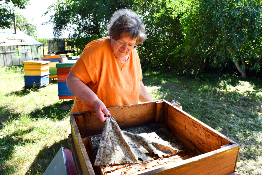 Pie biškopēm Iecavas pagastā. Anna Tiesnese un Ruta Āboliņa atzīst, ka darbs dravā ir fiziski ļoti smags