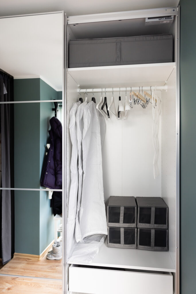 Mazos priekšnamos pat vienam centimetram ir liela nozīme. Ja telpa ir nekārtīga un pārāk piebāzta ar mantām, apģērbu un daudz ko citu, arī vizuāli tas telpu padarīs vēl mazāku un sašaurinās. Šāda veida telpās vislabāk būtu iebūvēt skapi ar bīdāmajām durvīm, kur ērti novietot un paslēpt visas mantas.