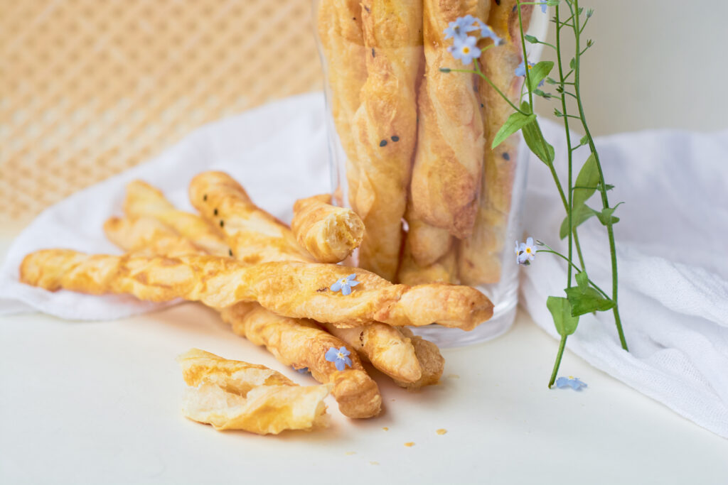Mīklu atlaidini un izrullē divos taisnstūros aptuveni 0,2 cm biezumā. Apsmērē vienu plāksni ar sakultu olu un pārkaisi ar rīvētu sieru. Pārklāj visu ar otru mīklas plāksni un, nedaudz piespiežot, izrullē abas daļas kopā, tā, lai slāņi salīmējas. Sagriez mīklas taisnstūri aptuveni 1-1,5 cm platās strēmelēs. Katru strēmeli savirpini ap savu asi vairākās reizes, vienlaikus cenšoties mīklu nestaipīt. Liec ledusskapī uz 20-30 min. Izkārto strēmelītes uz cepamās paplātes ar ~2 cm attālumu vienai no otras (jo standziņas cepoties uzbriest). Cep cepeškrāsnī 180 grādu karstumā cepeškrāsnī aptuveni 10-15 minūtes, lai standziņas iegūst zeltainā krāsu.