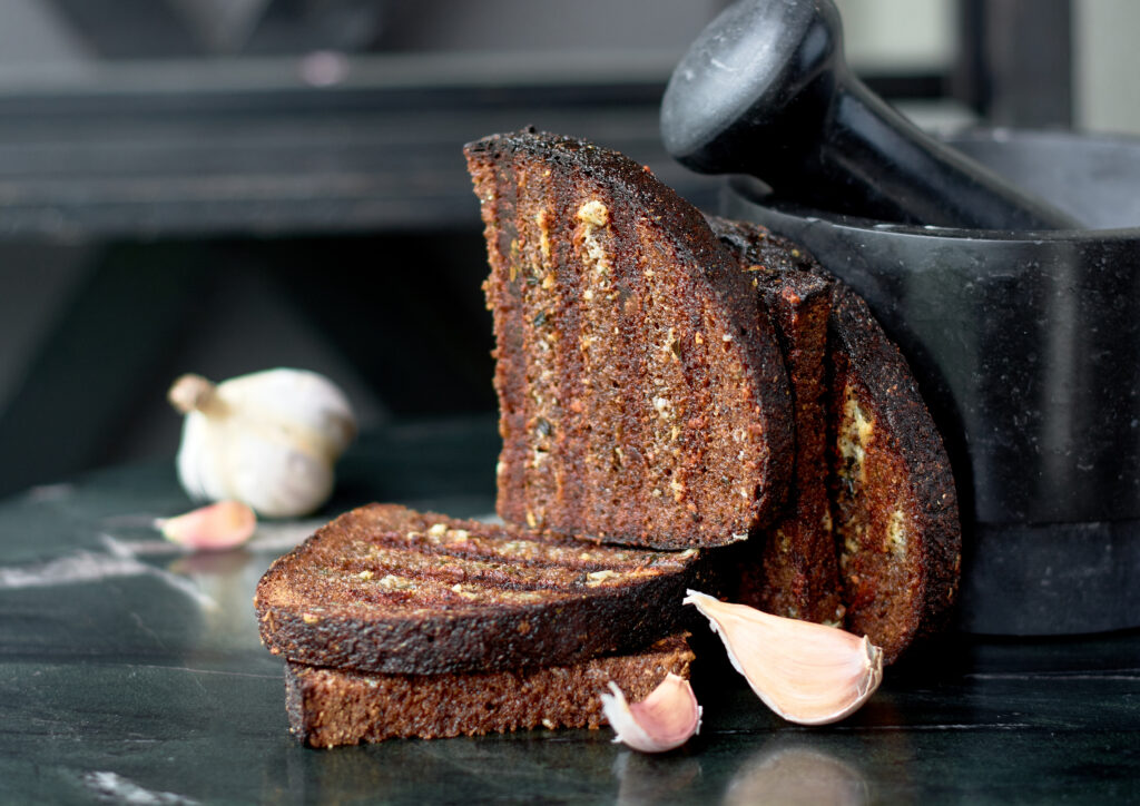 Sajauc izkausētu sviestu ar olīveļļu, pievieno pavisam nedaudz sāls (var droši iztikt arī bez tās, jo maizē visbiežāk tiek pievienots diezgan daudz sāls!) un ķimenēm. Sagriez maizi 0,5-0,8 cm biezās šķēlēs un apsmērē katru gabaliņu ar eļļas maisījumu. Liec maizīti uz sakarsētā grila vai karstām restēm virs ugunskura un cep 2-3 minūtes no katras puses.