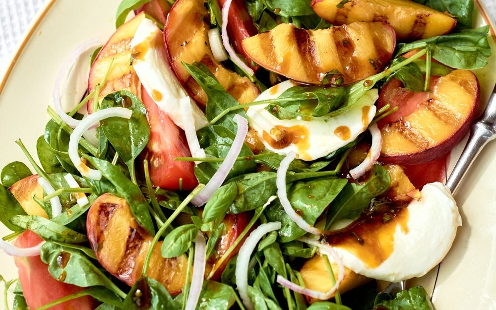 Salāti ar tomātiem un grilētiem nektarīniem