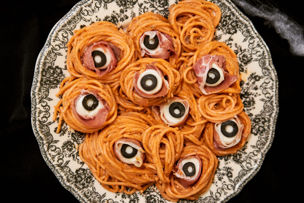 Šai receptei ir šausminošs ārējais izskats un ļoti laba uzturvērtība! Mērces sastāvā ir ķirbja biezenis kam ir neitrāla garša, bet laba pievienotā vērtība, jo tas satur A, C, E, K, B6 vitamīnus, kāliju, magniju, fosforu, dzelzi un šķīstošās šķiedrvielas. Mocarellas siers un prošuto, savukārt, ir izcils pilnvērtīgs olbaltumvielu avots, bet spageti satur “lēnos” ogļhidrātus, B grupas vitamīnus un šķiedrvielas. Ja šim ēdienam klāt baudīsiet arī dārzeņu salātus, maltīte būs vēl pilnvērtīgāka.