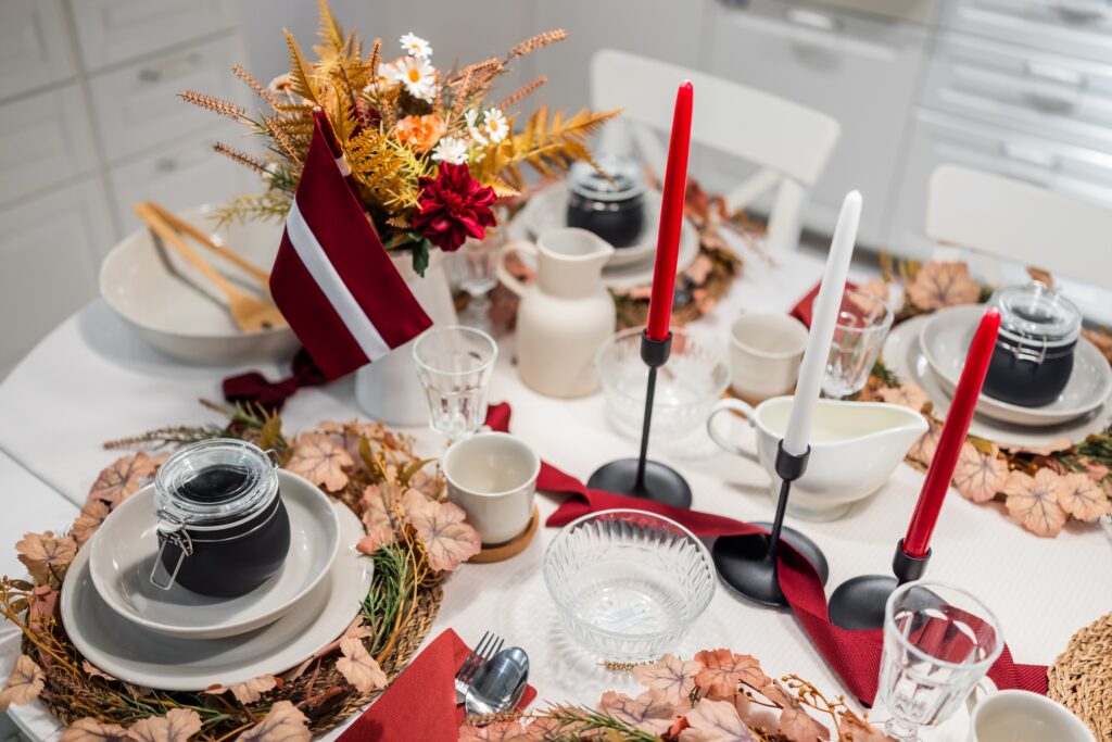 Daudzi Latvijas iedzīvotāji Latvijas Republikas proklamēšanas dienu atzīmēs kopā ar ģimeni un draugiem ārpus mājām, iededzot sveces, dodoties lāpu gājienā un dziedot dziesmas, bet vēlāk turpinot svinības siltumā mājās. Interjera dizainers iesaka, kā, pārlieku netērējoties, radīt tematisku svētku galda klājumu.
