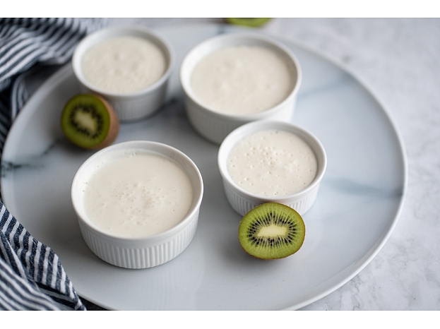 Jogurta pudiņš ar kivi salsu (4 porcijas; 25 minūtes)