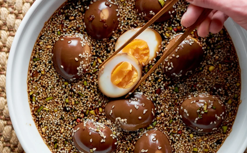 Šādi marinētās olas būs gan labas uzkodas, gan lielisks papildinājums zupām, nūdeļu ēdieniem, salātiem, un, protams, tās būs arī pārsteigums Lieldienu svinētājiem, ka olas var krāsot arī šādi!