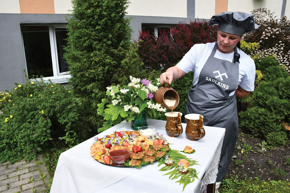 Saulaines skolas jaunietes ar pasniedzēju palīdzību sagatavojušas galdu Līgo noskaņās, tā klājumā liekot četras dažādas uzkodas katrai gaumei. «Es ļoti lepojos ar pasniedzējām – Evitu Zviedri un Adriju Sovāni – par radošumu un spēju ieinteresēt topošos pavārus un viesmīļus,» atzīst struktūrvienības vadītāja Iveta Leitnante, «jaunieši šeit iemācās un pašu spēkiem pagatavo gan zināmas lietas jaunā izpildījumā, gan arī tradicionālus ēdienus un uzkodas.» I. Leitnante ir lepna par jauniešu apķērību un spējām, jo teorētiskās un praktiskās nodarbības sniedz profesionālas zināšanas un pieredzi katrā no tehnikumā apgūstamajām jomām.
