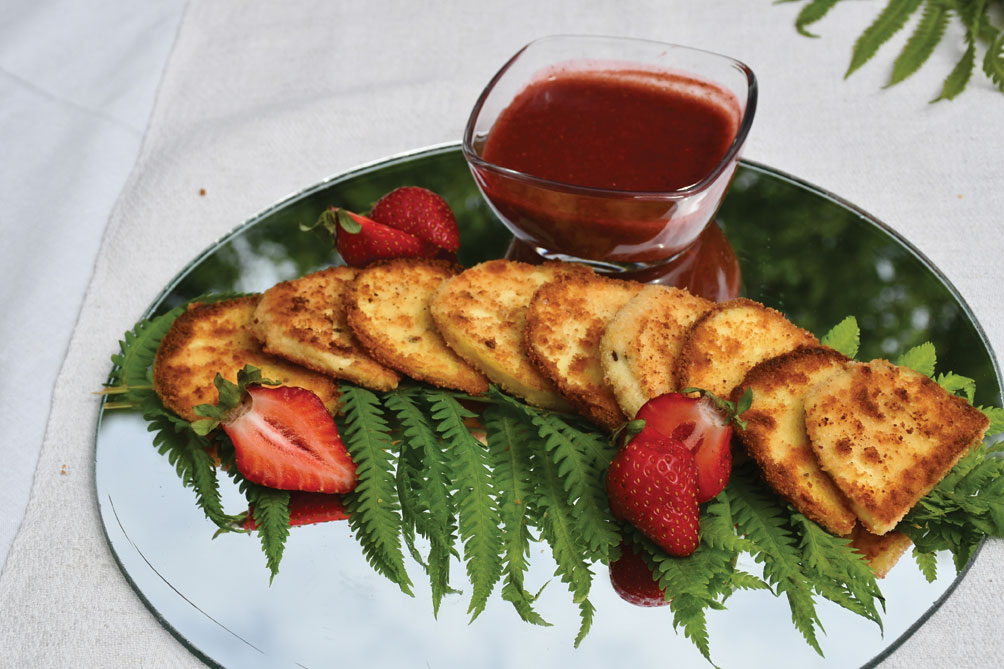 Cepts Jāņu siers ar zemeņu-piparmētru mērci