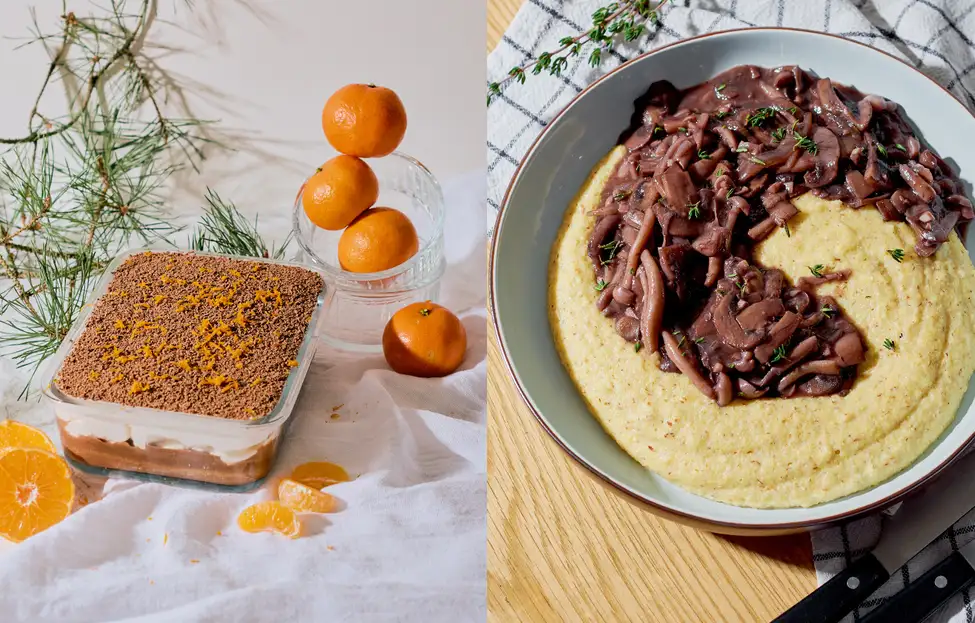 Ja apnikuši klasiskie cepeši un trejdeviņi ēdieni, vai svinētāju pulkā gaidām vegāniska uztura cienītājs, bet nav ideju, ko gatavot, uztura speciāliste Jevgēnija Jansone piedāvā receptes diviem gardiem Ziemassvētku ēdieniem. Viegli pagatavojamais tiramisū ar mandarīniem būs ideāls deserts, bet vegāniskā polenta ar sēņu ragū – sildošs un spēcinošs pamatēdiens.