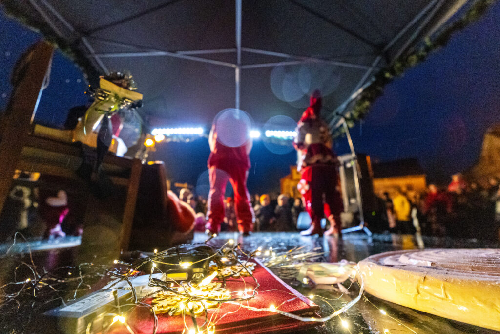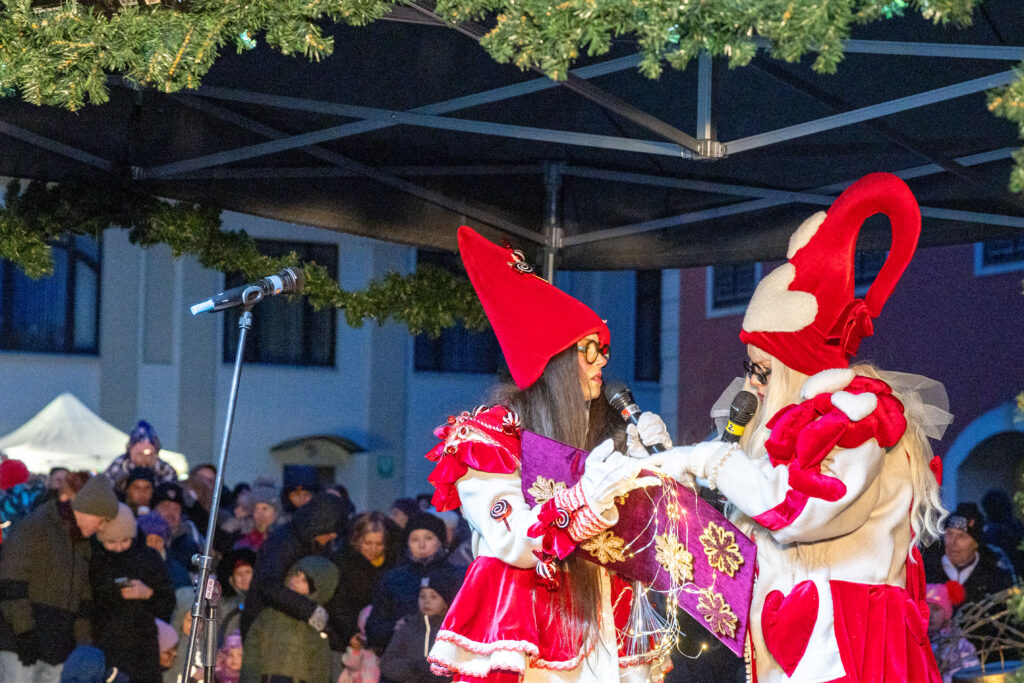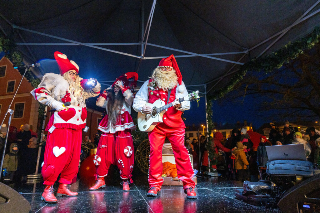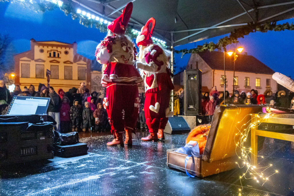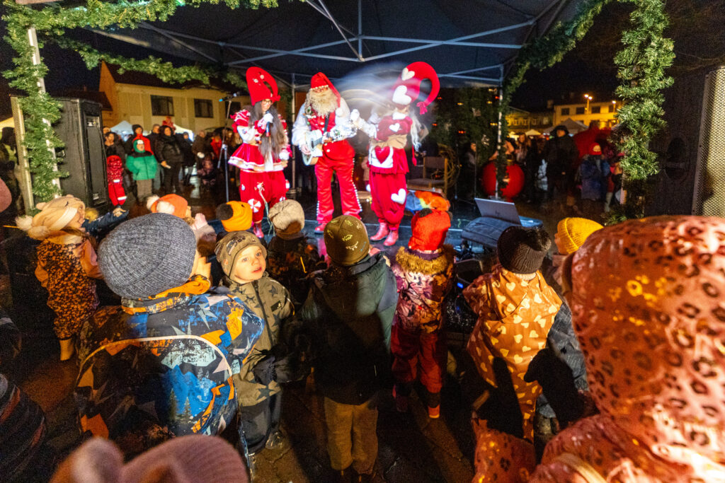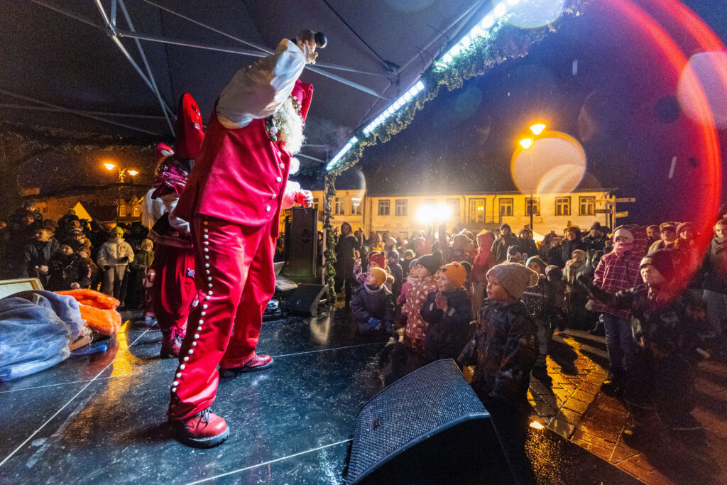 Ar sanākušajiem runājās rūķi Mirdzumiņš un Sirsniņš rotaļuzvedumā “Kad eglīte iemirdzas mīlestībā un spožumā”. Kopā ar rūķiem tika meklēta atbilde uz jautājumu, kas ir svarīgāks – egles spožums vai tomēr mīlestība, kas liek tai patiesi iemirdzēties.
