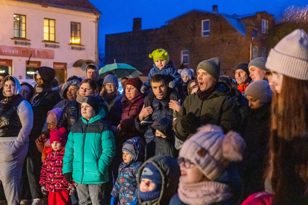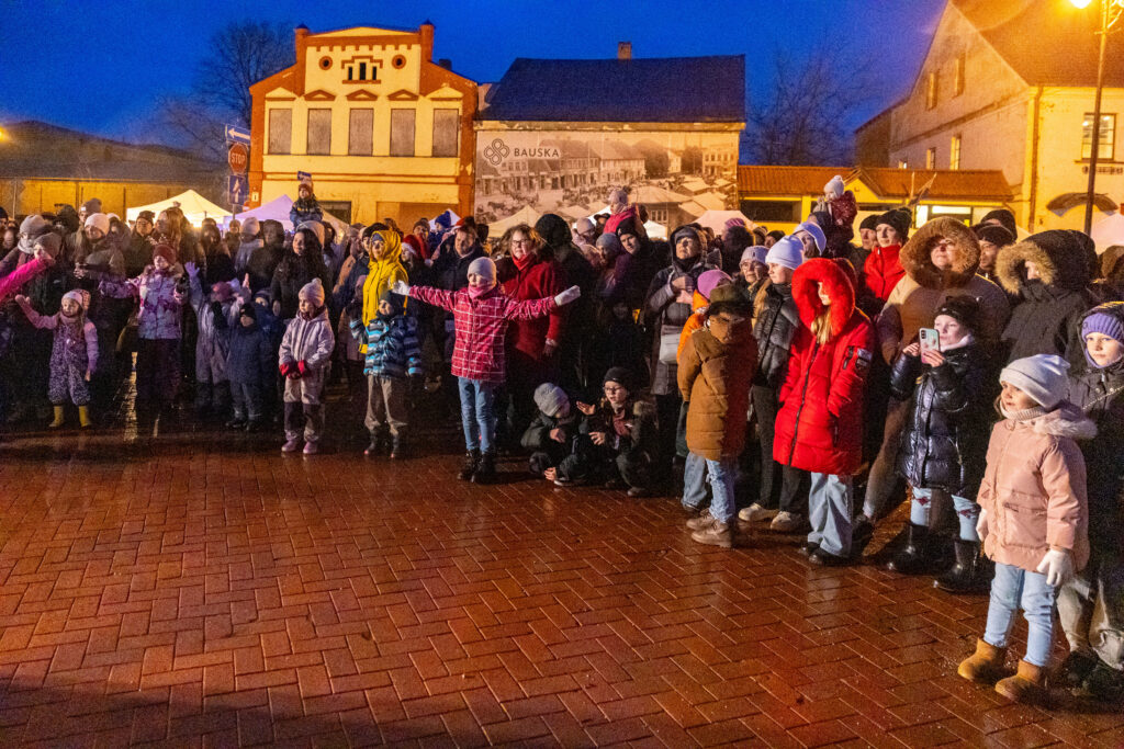 Sestdienas, 6. decembra, pēcpusdienā ģimenes ar bērniem pulcējās Bauskas rātslaukumā, lai kopīgi iedegtu gaismas svētku eglē.