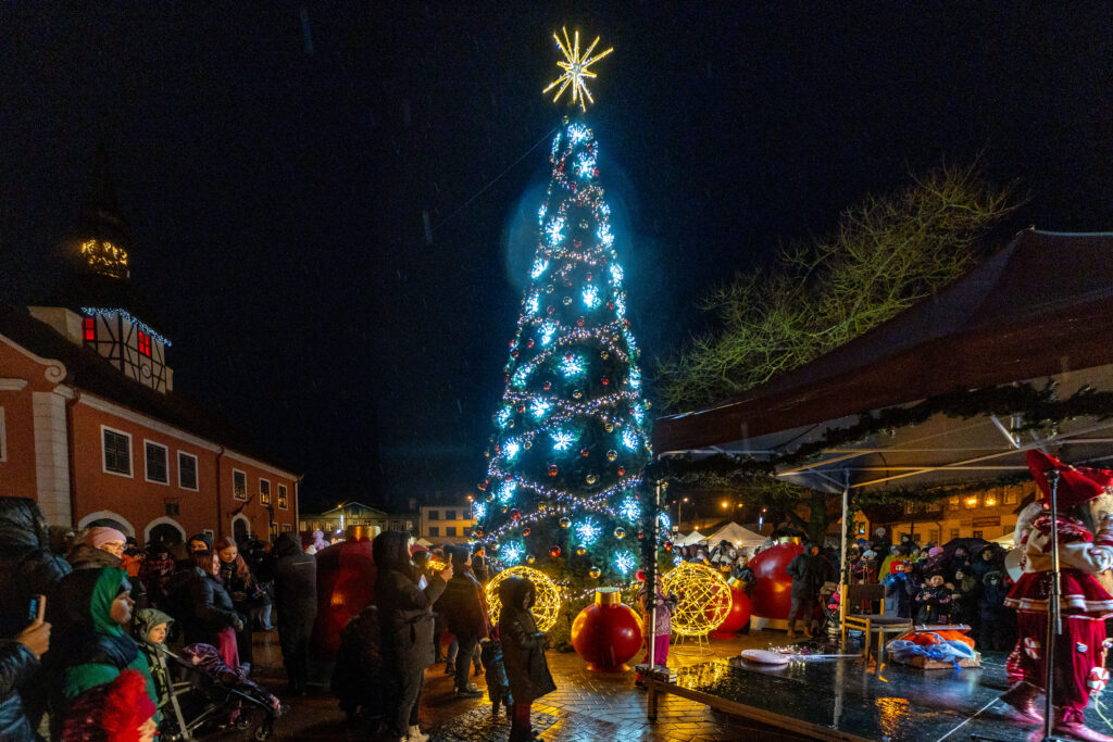 FOTO: Bauskas rātslaukumā iedegas gaismas pilsētas centrālajā eglē (4)