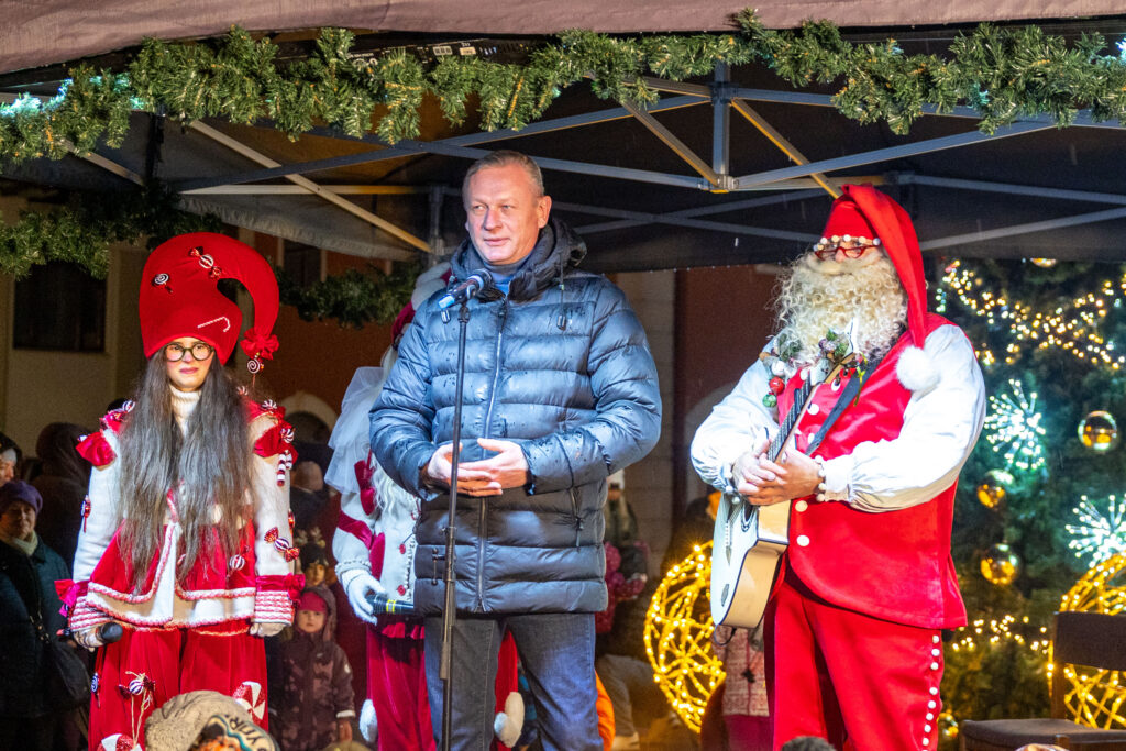 Kopā ar pilsētniekiem un viesiem bija arī Bauskas novada domes priekšsēdētājs Aivars Mačeks. Neraugoties uz lietaino laiku, egles gaismiņu iedegšanas pasākumā pulcējās ne mazums ļaužu.