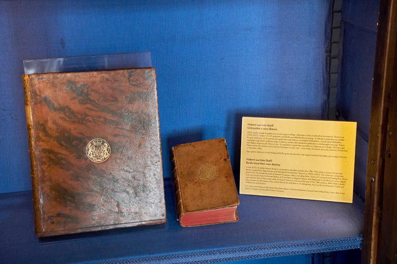 Taču, kā stāstīja direktore, izšķirošais pavērsiens notika 2025. gada rudenī, kad muzeja krājuma speciālisti vairākos izsoļu namos pamanīja atsevišķas hercoga Pētera bibliotēkai piederējušas grāmatas. «Sākumā iegādājāmies trīs grāmatas, pēc tam deviņas, tad vēl divas.»