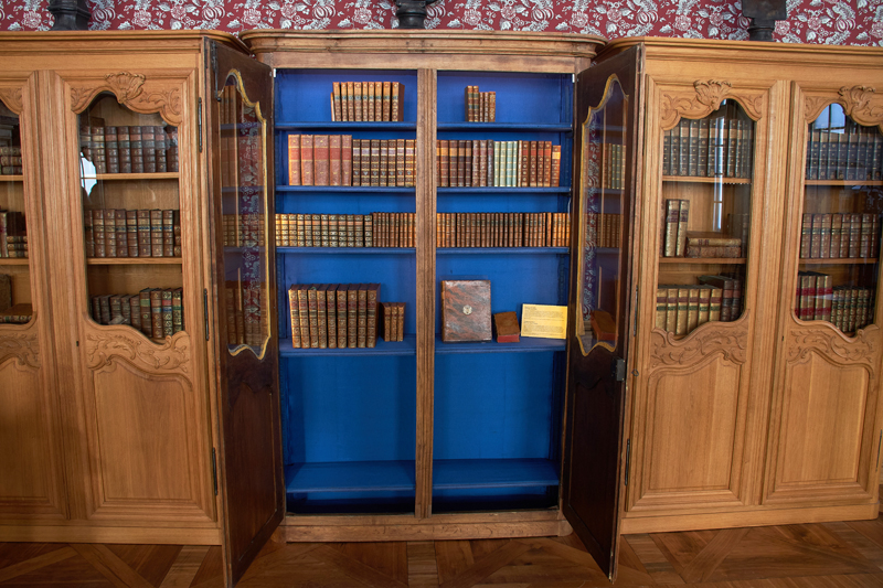 Ekspozīcijā oriģinālajā ozolkoka skapī goda vietā izliktas vairāk nekā 60 grāmatas no hercoga Pētera bibliotēkas. Daļa no šiem sējumiem 18. gadsimta beigās aizvesti no Jelgavas pils uz Zāganas pili Silēzijā un vēlāk nonāca Kurzemes princešu īpašumā, un tagad tās simboliski atgriezušās Rundālē.
