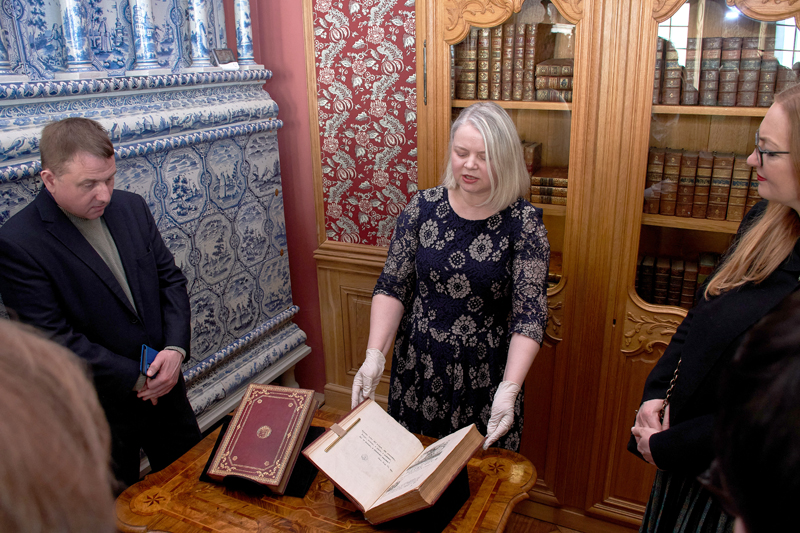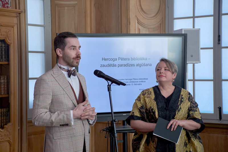 Svinīgais sarīkojums aicinātu viesu klātbūtnē notika svētdien, bet iepriekš, piektdienā, bija organizēta atsevišķa tikšanās žurnālistiem, lai atklātu īpašo stāstu par hercoga Pētera Bīrona bibliotēkas atgriešanos mājās – Rundālē.