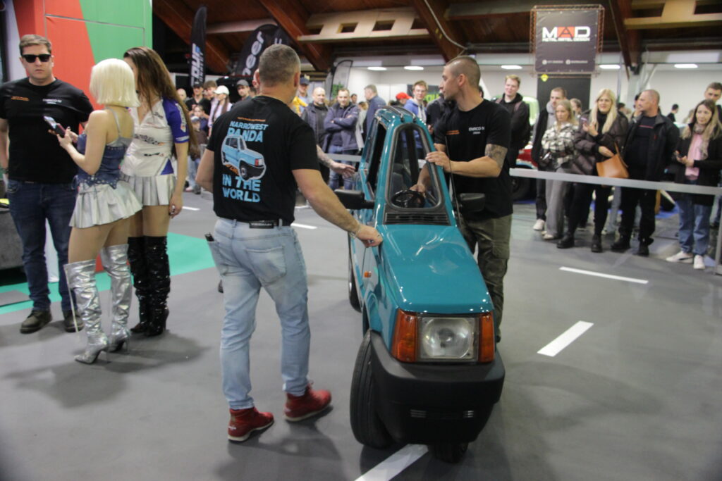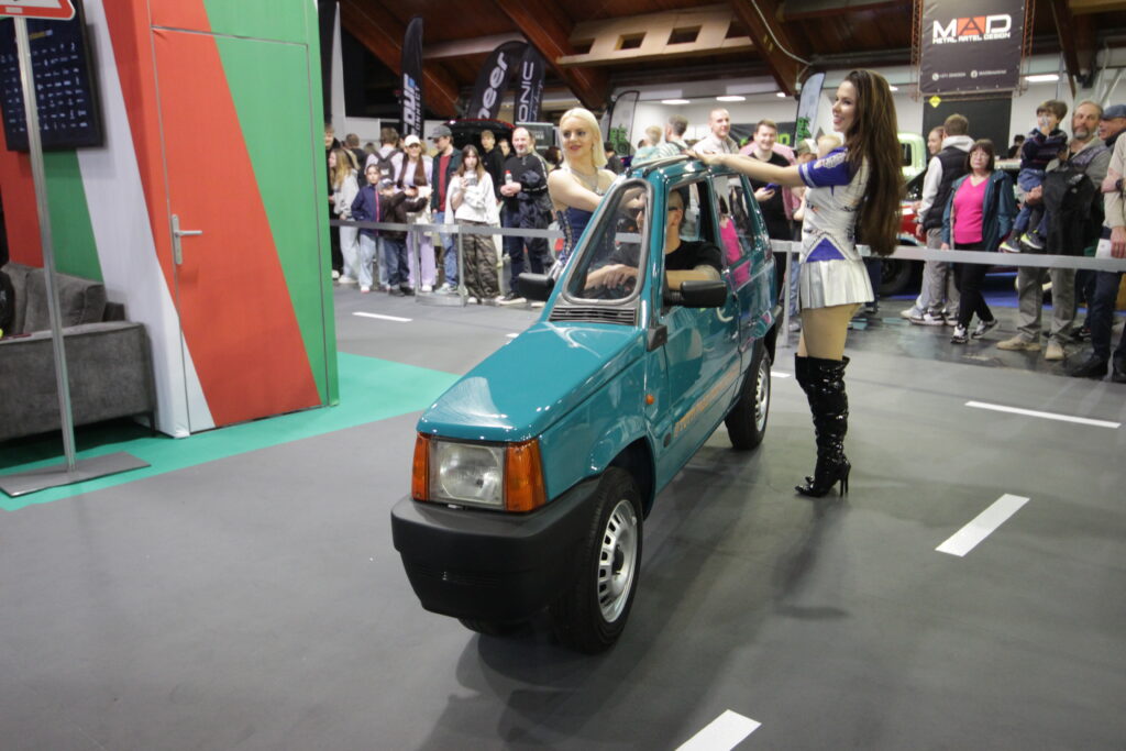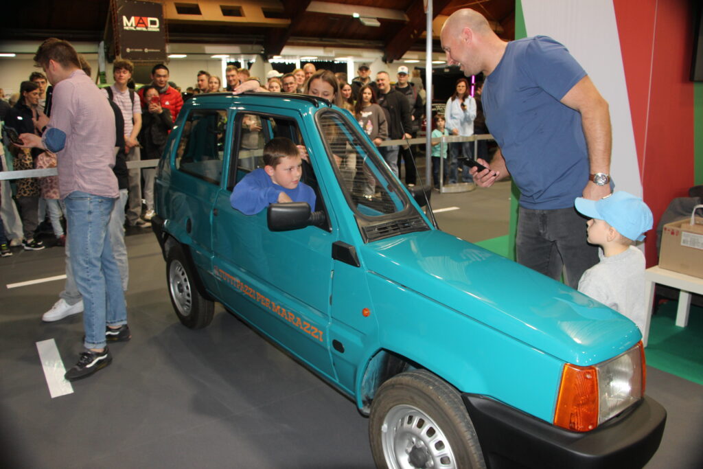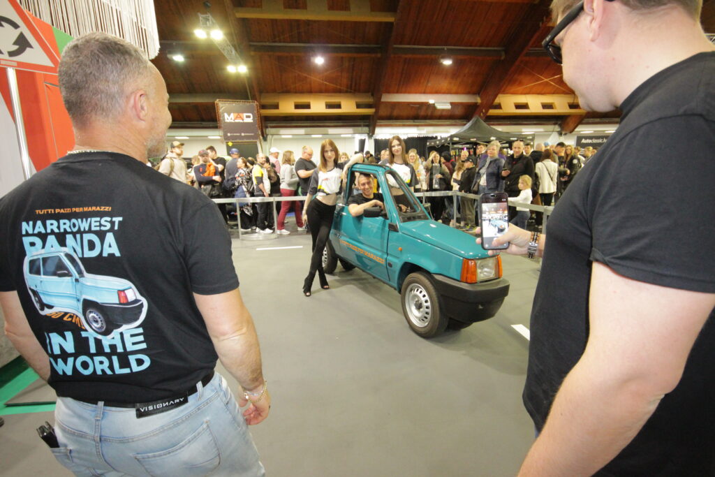 Uz izstādi Rīgā no Itālijas ieradies pasaulē visšaurākais pilnībā funkcionējošais automobilis, kas pretendē uz Ginesa rekordu. Tas ir radīts uz klasiskā “Fiat Panda” modeļa bāzes un ir tikai 50 centimetrus plats. Turklāt tajā bērniem un īpašo konkursu uzvarētājiem būs iespēja arī iesēsties. Šo unikālo spēkratu radījis automehāniķis Andrea Maraci viena gada laikā paša rokām. Projekta pamatā ir klasiskā 80. gadu “Fiat Panda”, kurai visupirms tika veikts vertikālais šķērsgriezums, automašīnas platumu samazinot no 149 cm uz 50 cm – tas ir salīdzināms ar standarta gultas spilvena platumu. Inženiertehniski vislielākais izaicinājums bija saglabāt visus četrus riteņus,  kas radīja sarežģījumus korekti strādājoša stūres mehānisma izstrādei. Pasaulē visšaurākā automobiļa maksimālais braukšanas ātrums ir 15 km/h, bet sniedzamība ar pilnu uzlādi – ap 25 km.