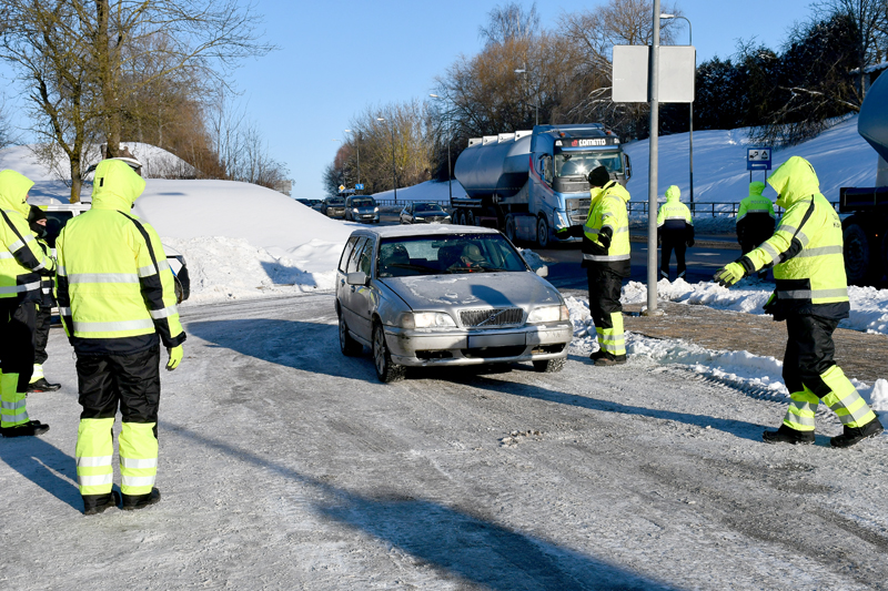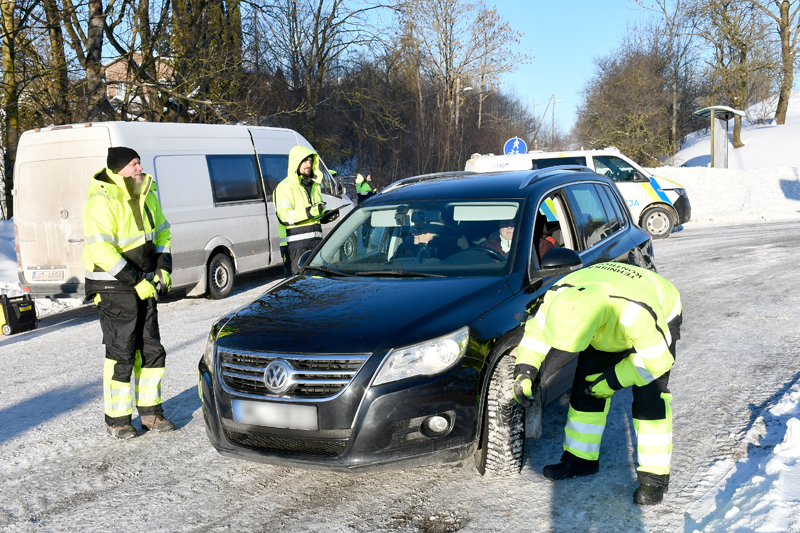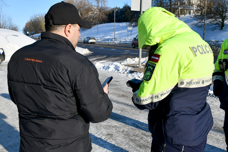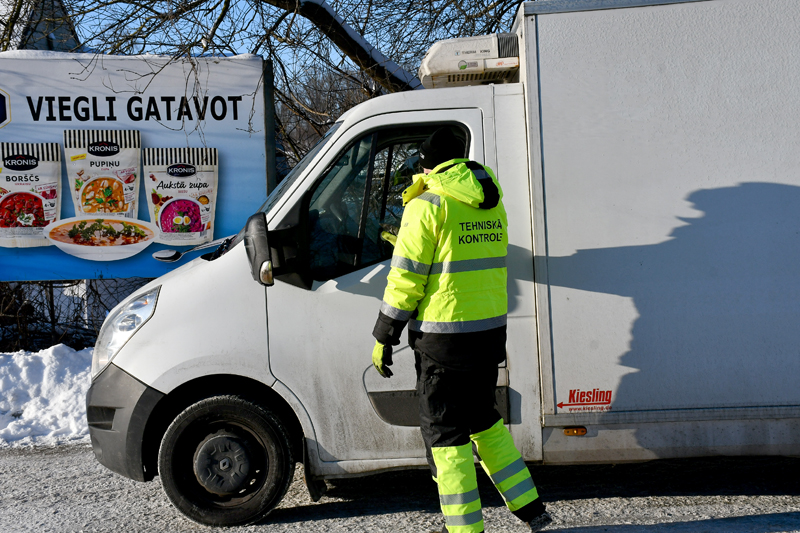 Ziemas spelgonī tika apstādināti visi vieglie auto pēc kārtas. Smagais transports šajā reizē netika pārbaudīts. To inspicē uz šosejām, pieejami lielāki laukumi, lai apstātos, jo pie Mēmeles tilta var rasties problēmas gan ar iebraukšanu, gan izbraukšanu. FOTO – IVARS BOGDANOVS