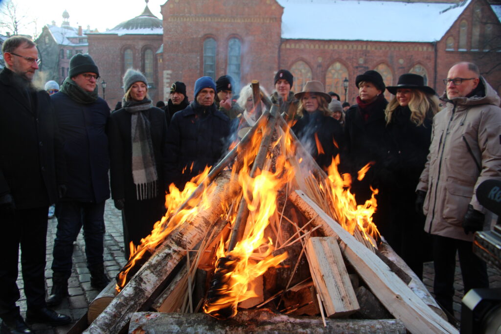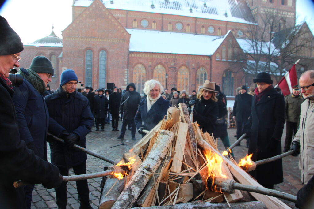 Barikāžu atceres ugunskuru iededza Saeimas priekšsēdētāja Daiga Mieriņa, aizsardzības ministrs Andris Sprūds, ārlietu ministre Baiba Braže, Ministru prezidente Evika Siliņa un citi. Klāt bija arī barikāžu biedrības pārstāvji.