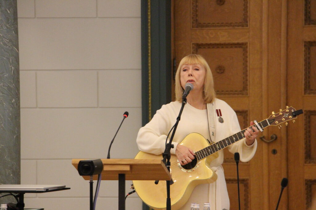 “Ar kailām rokām, bet stingru pārliecību, cilvēki stājās plecu pie pleca, daudz nedomājot – kāds būs iznākums. Viņi juta – katram jābūt klāt un jāiesaistās. Jo tieši tajos brīžos tapa mūsu zemes un valsts nākotne,” sacīja Saeimas priekšsēdētāja Daiga Mieriņa (Zaļo un Zemnieku savienība).