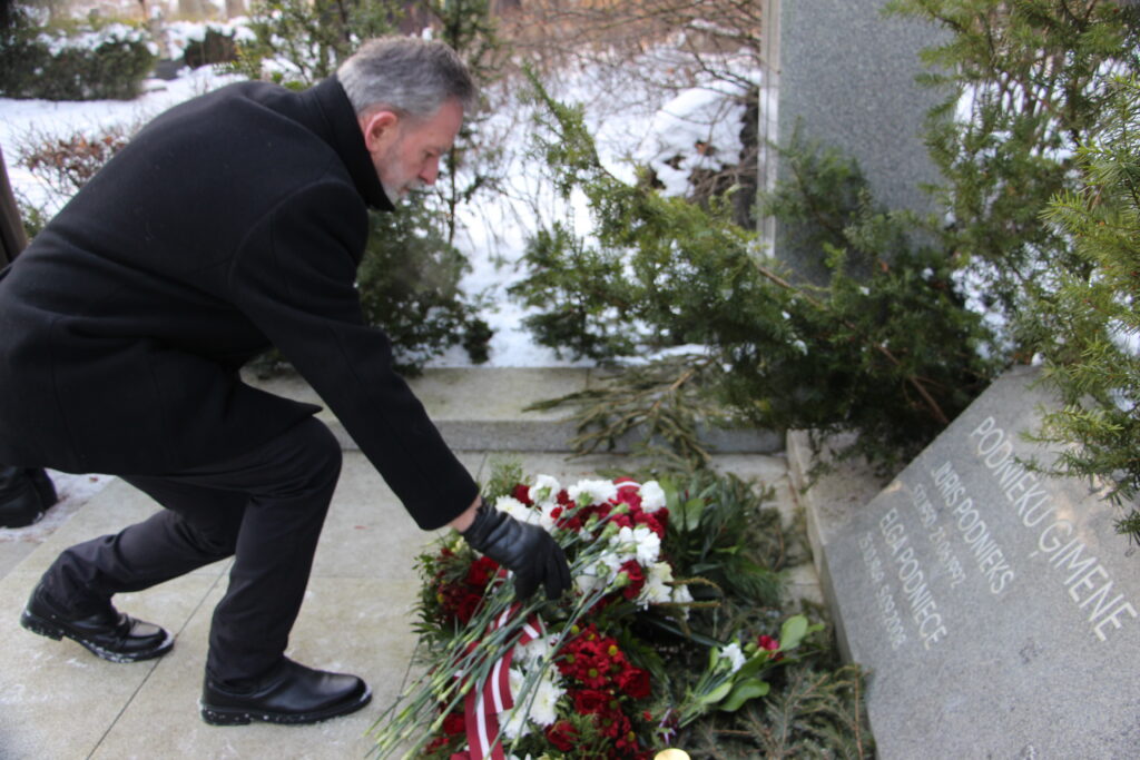 Pulksten 11 notika piemiņas brīdis un ziedu nolikšana pie Brīvības pieminekļa, Bastejkalnā pie bojāgājušo piemiņas vietām, pie bijušās Iekšlietu ministrijas ēkas Raiņa bulvārī 6.
