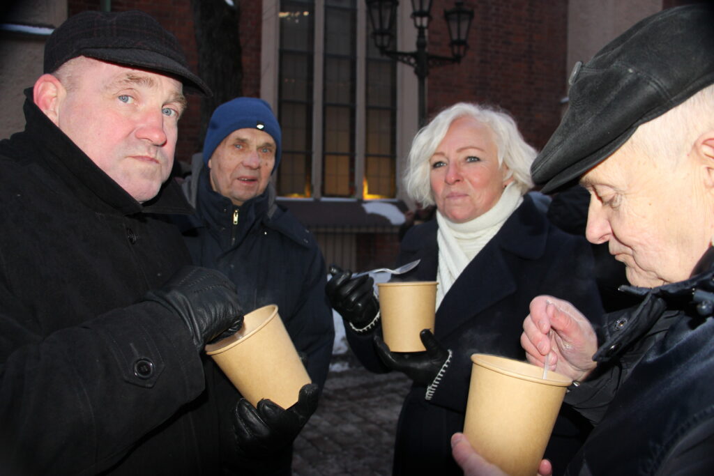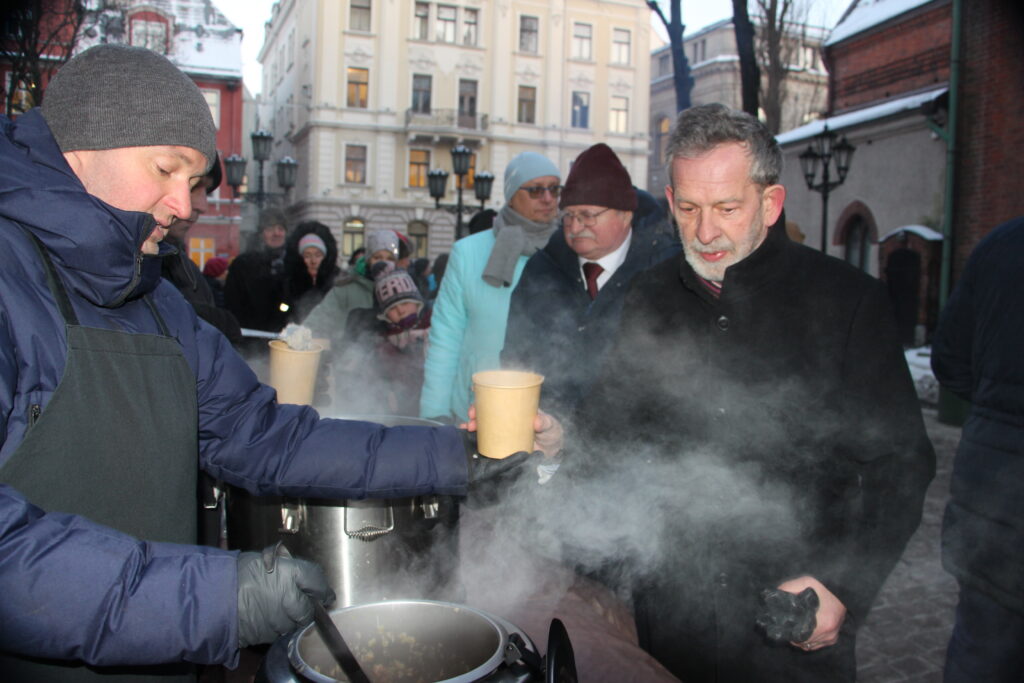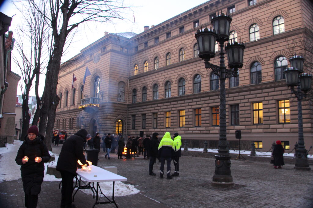 Neraugoties uz auksto laiku, pie Saeimas bija ieradusies neliela cilvēku grupa, lai dalītos savās atmiņās un stāstos par piedzīvoto pirms 35 gadiem. Tiesa, lai sasildītos, varēja malkot tēju un nogaršot putru. Pie Saeimas sanākušos uzrunāja arī Saeimas priekšsēdētāja, kas pateicās visiem sanākušajiem.
