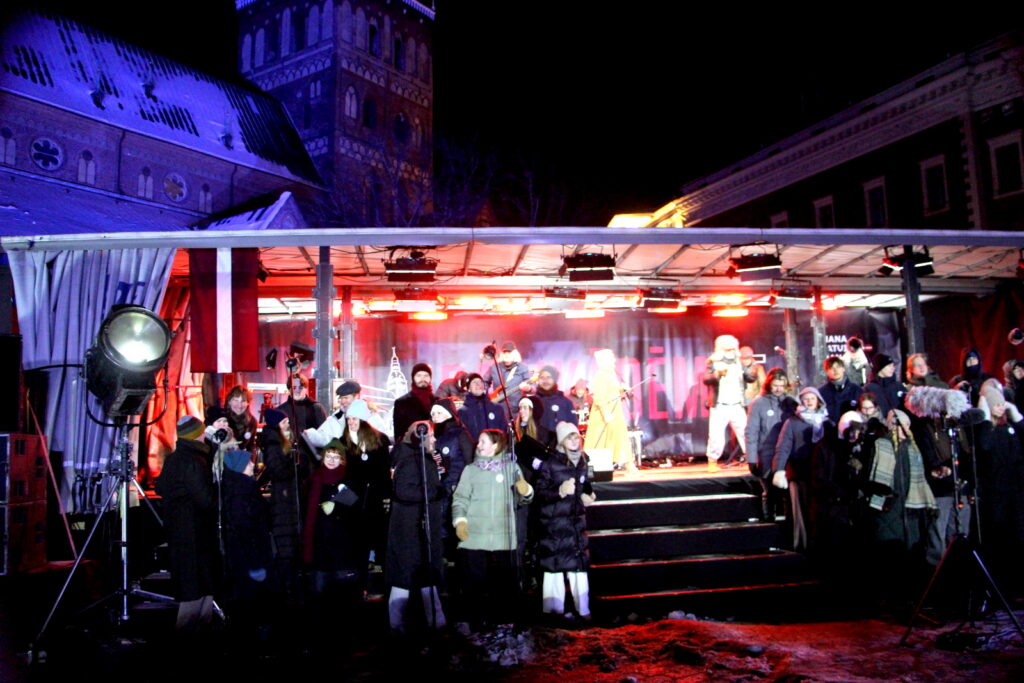 Lielkoncertā piedalījās solisti – Ieva Akuratere, Katrīna Altenburga, Eduards Rediko, Ints Teterovskis, DJ Niks Jakovickis, kā arī Latvijā atpazīstamas grupas- “Pērkons”, “Līvi”, “Sudden Lights”, vīru kopa “Vilki” un folkloras un seno cīņu kopa “Vilkači”. Koncertā piedalījās arī kori: jauniešu koris “Balsis” (diriģents Ints Teterovskis), jauktais koris “Līgo” (diriģente Karmena Jakovļeva), Zemessardzes koris “Stars” (diriģents Ārijs Šķepasts), kā arī Rīgas Valsts 1. ģimnāzijas jauktais koris “Frekvence” un Rīgas Valsts 1. ģimnāzijas meiteņu koris “Gamma” (diriģents Kaspars Vēvers). Pasākuma režisors Juris Jonelis, muzikālais vadītājs – Ints Teterovskis.