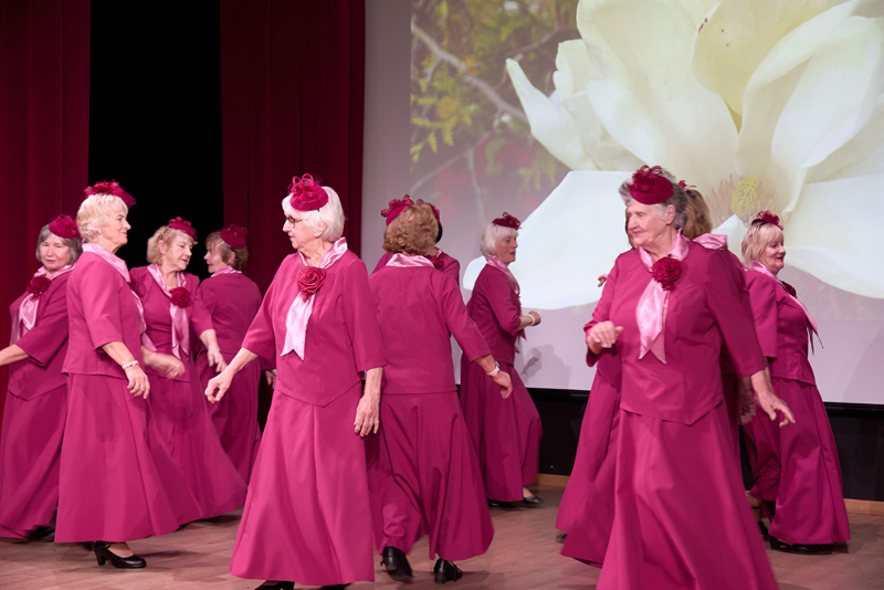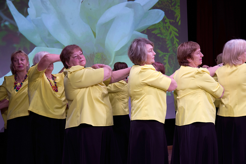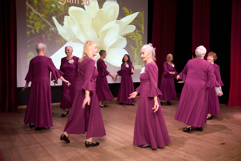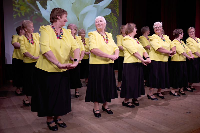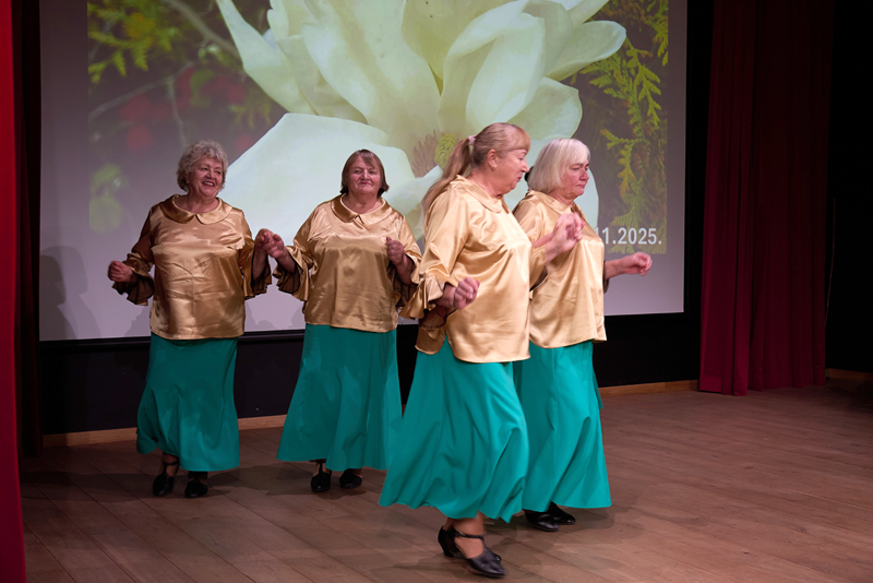 Protams, divdesmitgades pasākuma «Sniedz roku man!» karaliene bija deja. Eleganti līganus soļus uz skatuves izdejoja un arī pa kādam ņiprākam dancim piedāvāja kā jubilāres, tā viņu viešņas – novada senioru deju kopas «Vēlreiz» no Bauskas, «Rudens rozes» no Vecumniekiem, «Kamenes» no Iecavas un domubiedrenes no Sesavas un Ikšķiles. Iejūtoties jautru matrožu un draisku oficianšu tēlos, «Magnolijas» parādīja, ka dejošanā vienmēr vieta ir arī humoram.