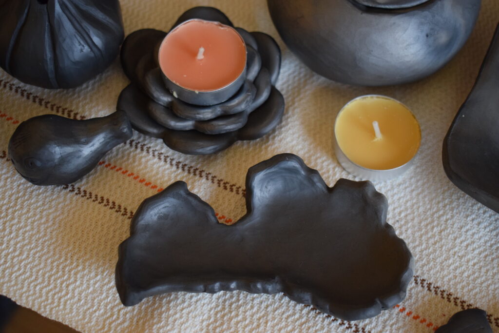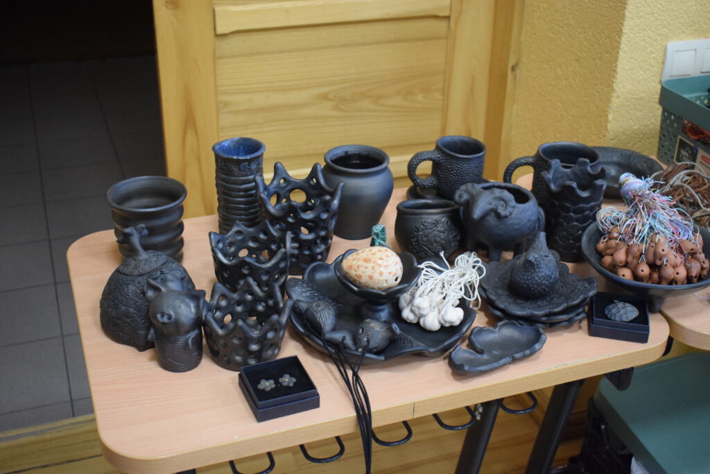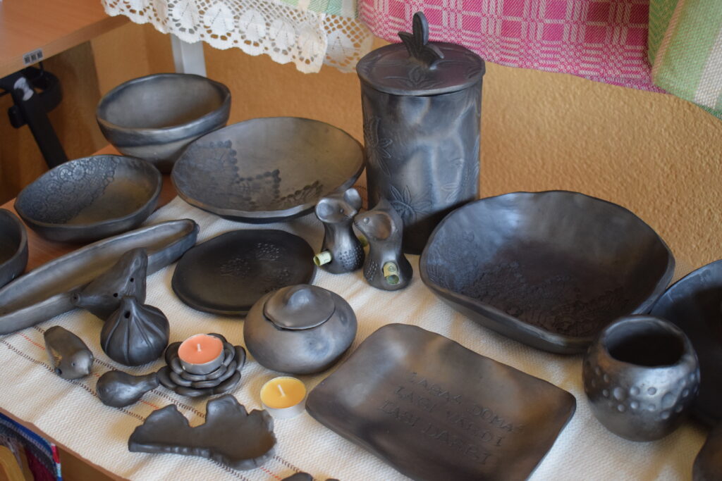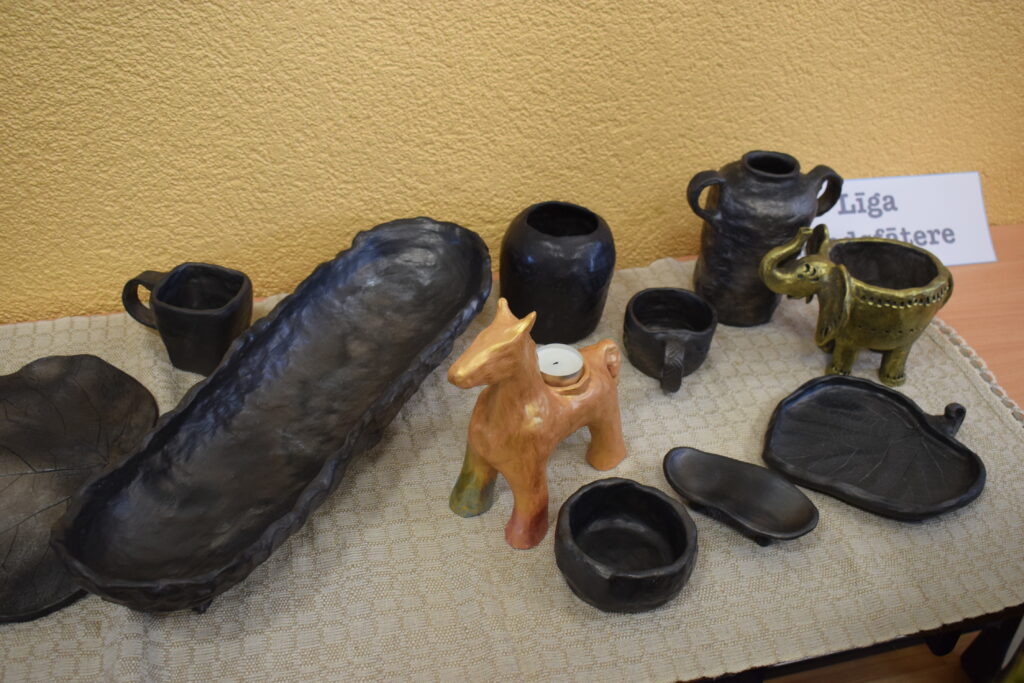 Arī Līgai Kindsfāterei sirdij tuva ir mālošana un, izrādās, D. Balckare ir viņas skolotāja, kas atvērusi ceļu uz unikālo māla pasauli. Pirmā saskarsme ar plastisko materiālu bijusi pirms daudziem gadiem, kad, mācoties 6. klasē, laukos izrakusi māla gabalu un izveidojusi figūriņu. Toreiz ciemos pie krustmātes bija iebraukusi kāda sieviete no «Latvijas keramikas» un, ieraugot darbiņu, teica – meitenei esot ķēriens. Talantu izkopusi gan tikai nesen, kad pārcēlusies dzīvot uz Bauskas novadu. L. Kindsfāterei prieku sagādā arī rokdarbi; sarīkojumā varēja apskatīt viņas adījumus. «Kad strādāju ar mālu, prāts atslēdzas un pagaist visas pasaules problēmas. Vislabprātāk veidoju skulptūras,» atklāj sieviete.