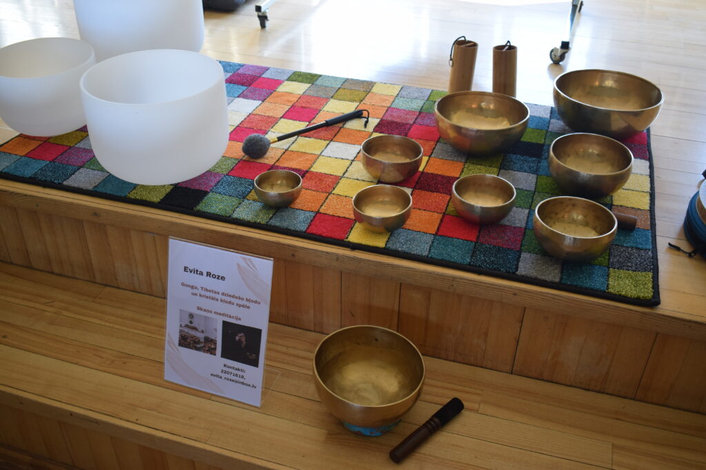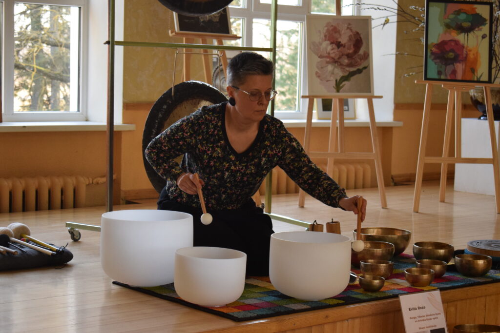 Evitas Rozes uzmanību gongi, Tibetas dziedošās bļodas, kristāla bļodas un citi vibroakustiskie instrumenti piesaistīja nejauši, nonākot klausītājas lomā. Ieinteresēja neparastais skanējums un tā raisītās izjūtas, tāpēc pievērsusies skaņu meditācijai jeb, kā viņai labprātāk tīk sacīt, skaņu ceļojumiem. Tā ir unikāla skaņu vibrācijas prakse, kas palīdz sasniegt dziļu relaksāciju, gūt mieru, atbrīvoties no trauksmes un spriedzes. E. Roze klātesošajiem demonstrēja vairākus līdzatvestos instrumentus, ļaujot sadzirdēt un sajust skaņu viļņu nomierinošo iedarbību. «Instrumenti tiek ievibrēti, un skaņa iedarbojas gan uz dzirdi, gan psihi,» viņa paskaidroja.