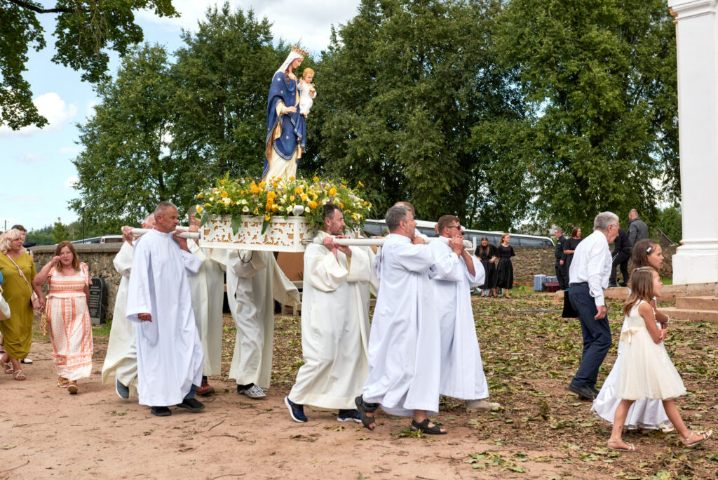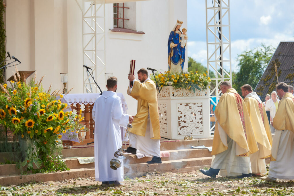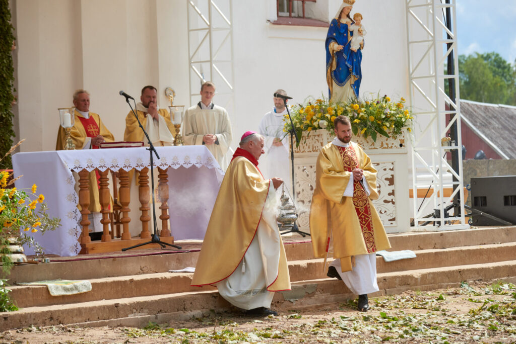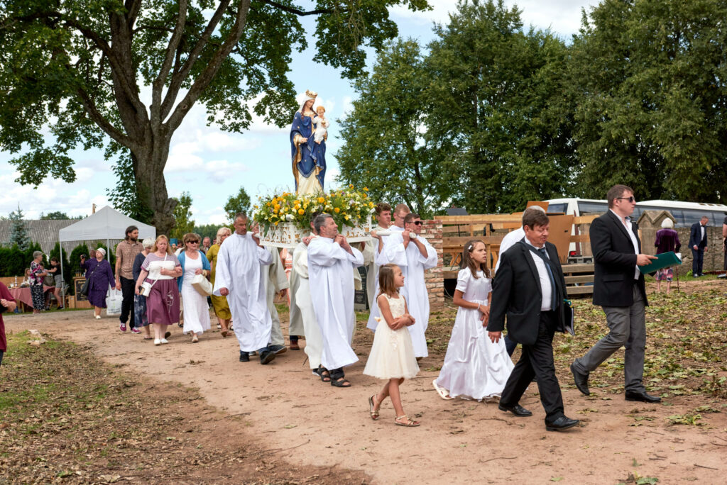 Dievkalpojums Skaistkalnes katoļu baznīcā sākās pulksten 10, kurš notika lietuviešu valodā, tad pulksten 12 Svētā Mise, kam sekoja gaismas procesija Dievmātes pagodināšanai un agape Madonas pūtēju orķestra muzikālā pavadījumā.