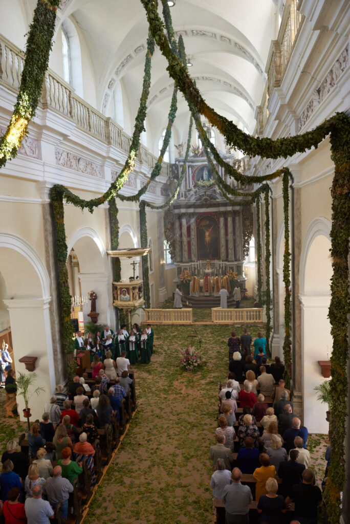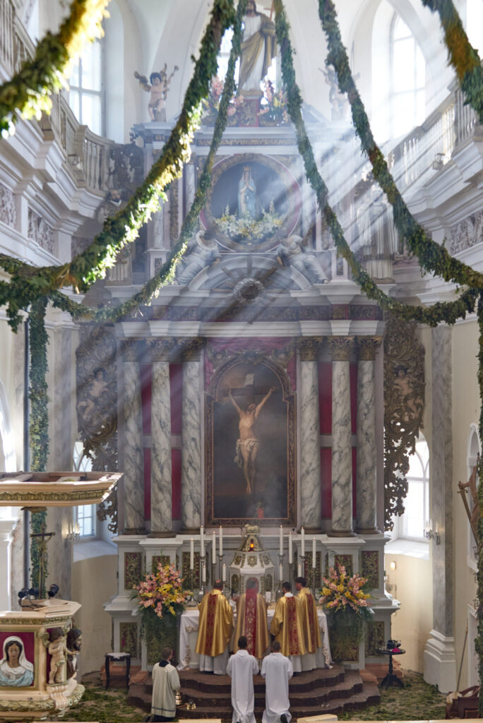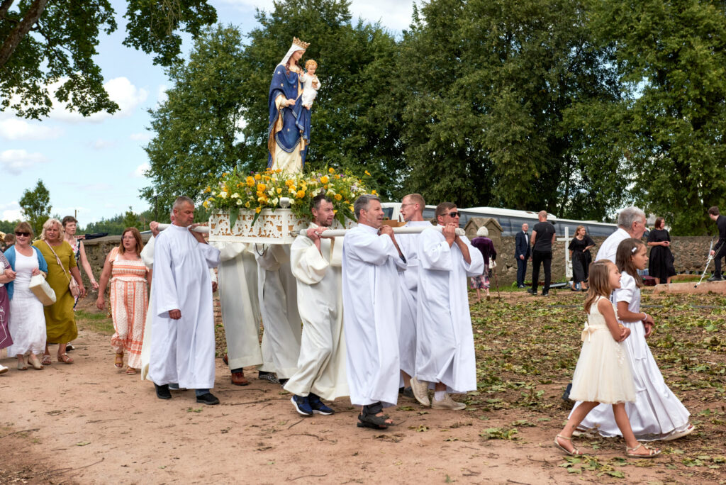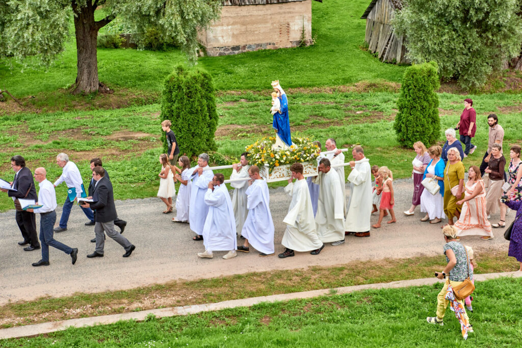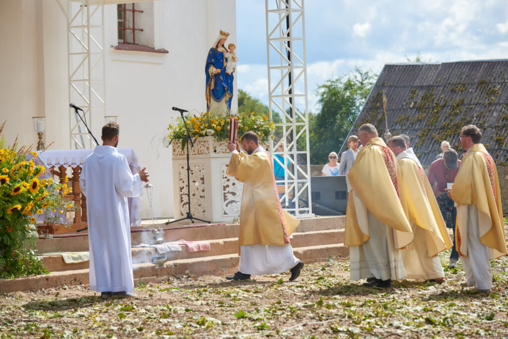 Dievkalpojums Skaistkalnes katoļu baznīcā sākās pulksten 10, kurš notika lietuviešu valodā, tad pulksten 12 Svētā Mise, kam sekoja gaismas procesija Dievmātes pagodināšanai un agape Madonas pūtēju orķestra muzikālā pavadījumā.
