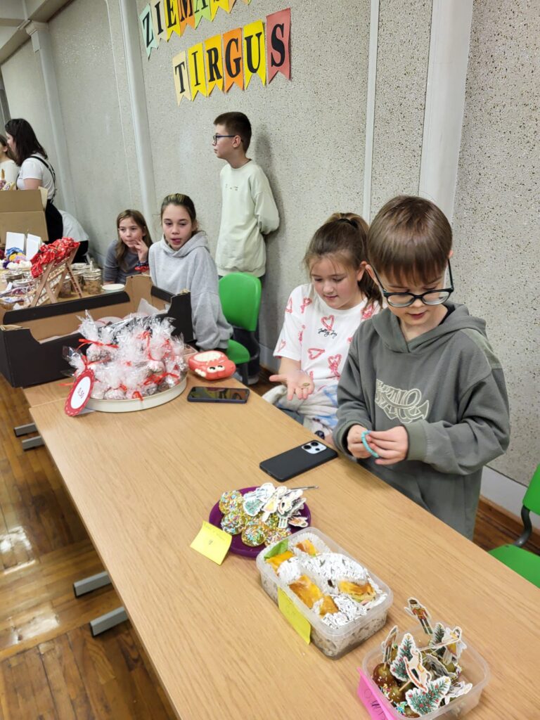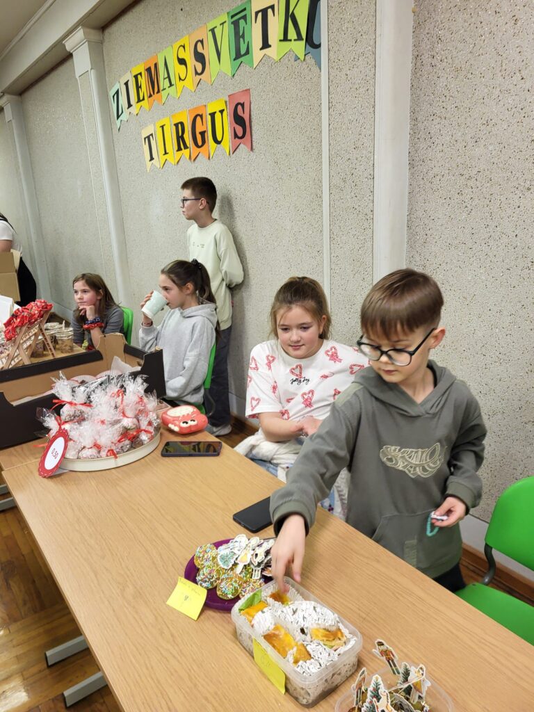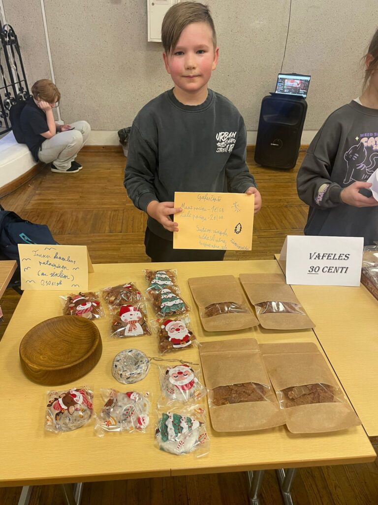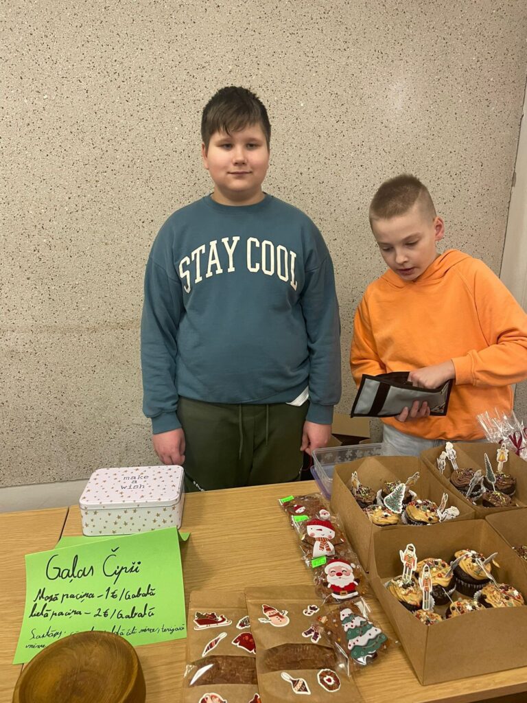 Skolas otrā stāva gaitenī valdīja rosība un čalas – pie galdiņiem piestāja skolotāji un vecāki, lai ne tikai iegādātos bērnu sarūpētos izstrādājumus, bet arī atbalstītu viņu iniciatīvu. Tirdziņš kļūst par iespēju skolēniem apgūt uzņēmības pamatus, mācīties sadarboties un piedzīvot patiesu Ziemassvētku prieku.