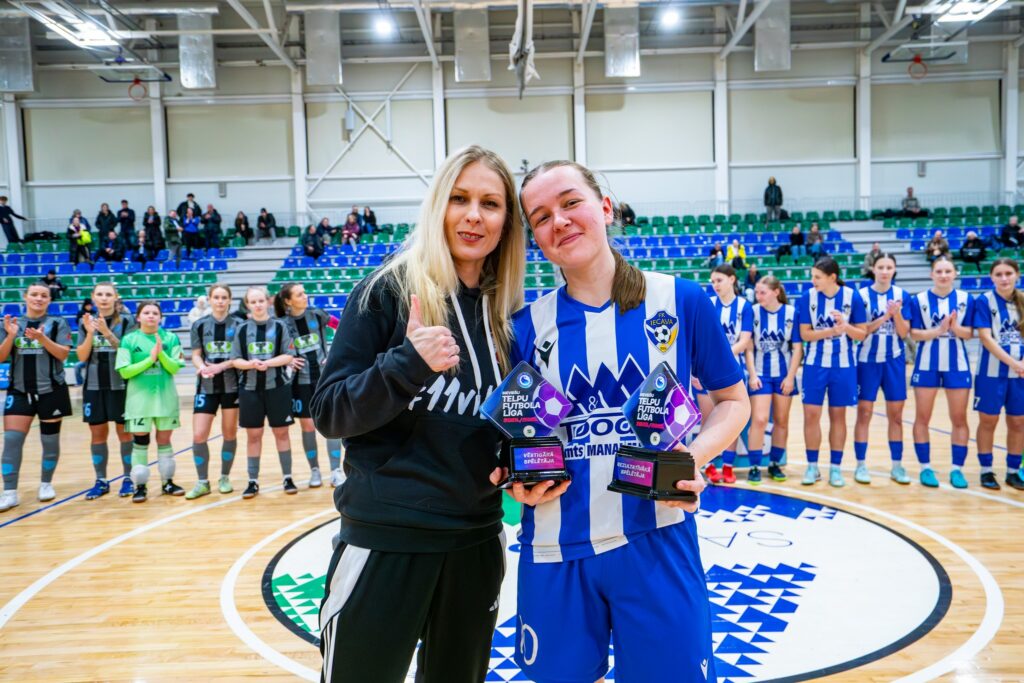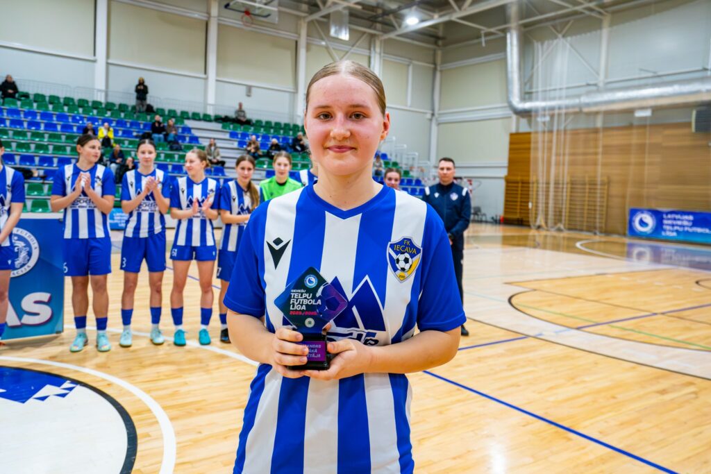Komandas labākā spēlētāja – Lote Aleksandrova, turnīra labākā un rezultatīvākā spēlētāja – Patrīcija Brazauska. Futbola komanda izsaka lielu pateicību arī līdzjutējiem. Foto: no komandas albuma