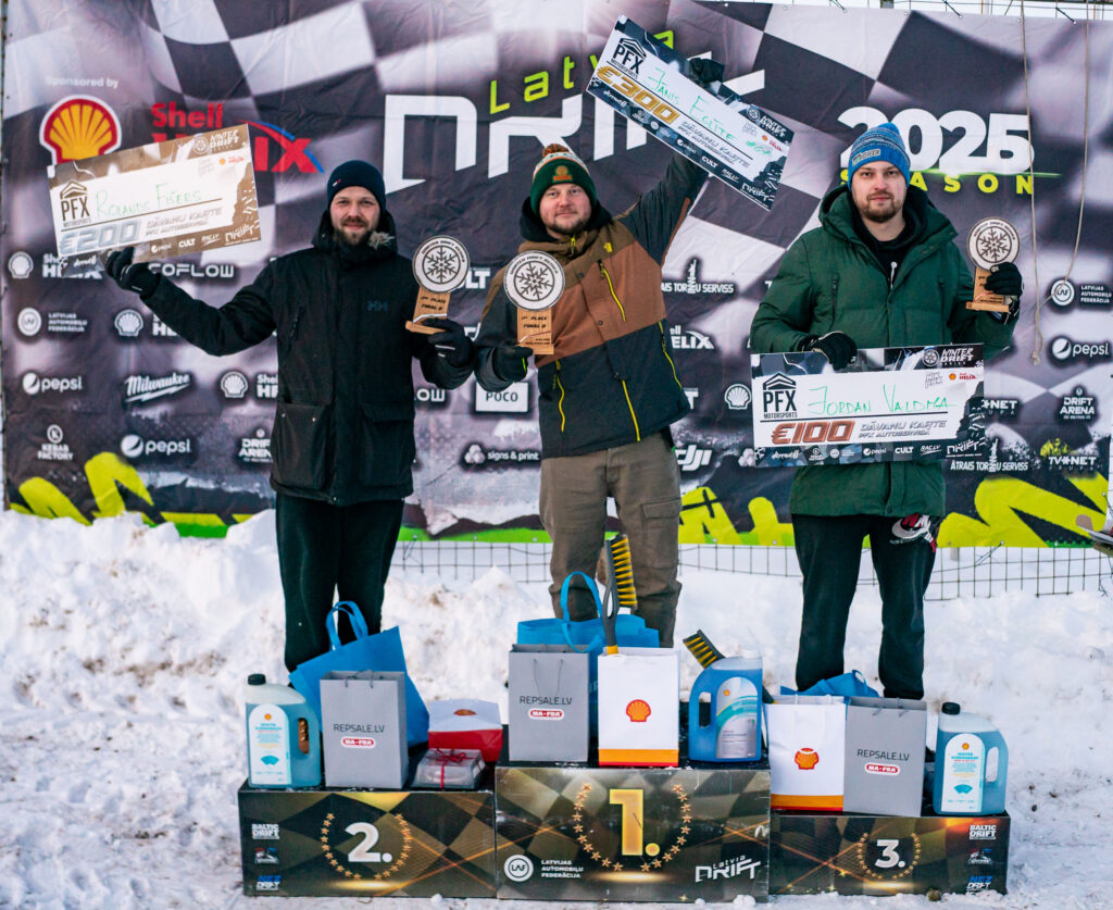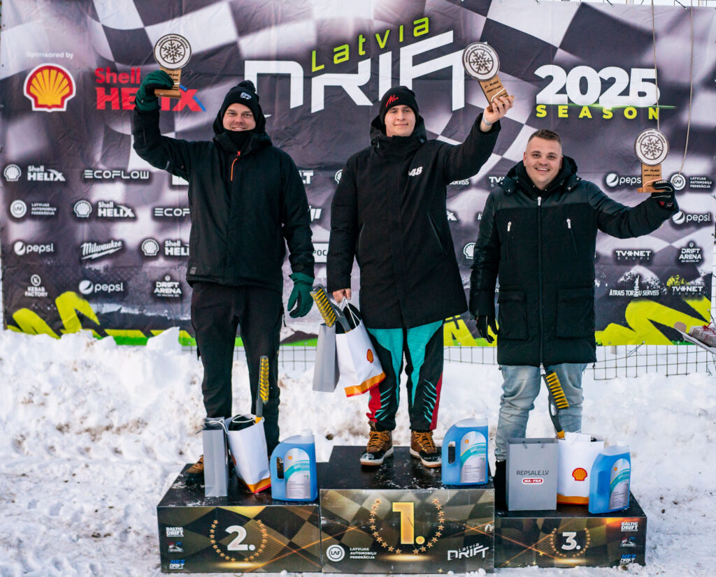 A finālā šoreiz bija pavisam citāds pjedestāls nekā pirmajā posmā, kas vēlreiz apliecina – iespēja uzvarēt ir ikvienam. Pirmo vietu izcīnīja juniors no “Street klases” Kārlis Milužs, kurš ar katru tandēmu demonstrēja arvien stabilāku un pārliecinošāku sniegumu, kas loģiski vainagojās ar uzvaru A finālā. Otrajā vietā – Alvis Ledskalniņš, kurš nesen atgriezies no Omānas un jau sācis savu ceļu PRO klasē. Trešajā vietā – Uģis Jurovs ar driftam neierastu automobili – “Mercedes-Benz”. Ziemas driftā šie auto kļūst arvien populārāki, un šajās sacensībās uz starta bija pat četri “Mercedes”.