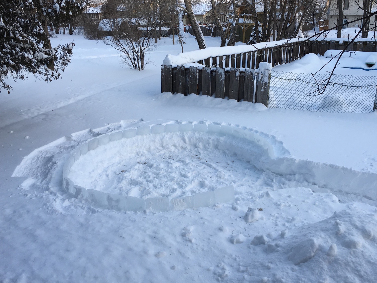 Liekot ledus blokus iglas lenķi pamazām liec iekšu. Ieteicams tos balstīt pret kādu atbalstu katrā jaunajā rindā, lai nodrošinātu, ka ledus ķieģelis piesalst.