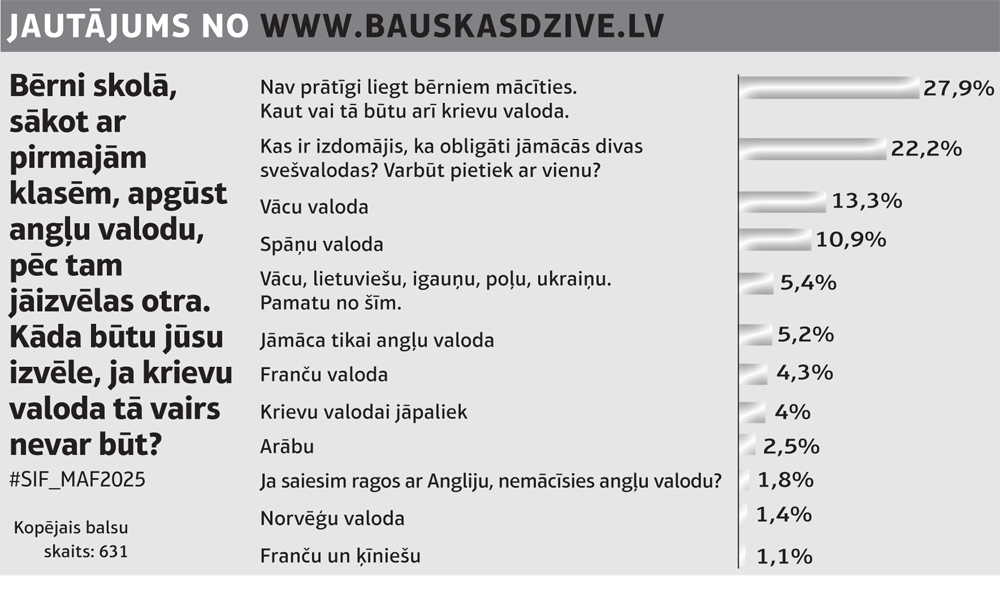 Baiba domā, ka ne visās skolās aptver pārmaiņas: «Krievu valodu kā otro svešvalodu nākamgad vairs nevarēs sākt. Citu svešvalodu skolotāju nav daudz. Jau tagad jāpiesaista pedagogi, lai sāktu pasniegt franču vai citas otrās svešvalodas stundas.»