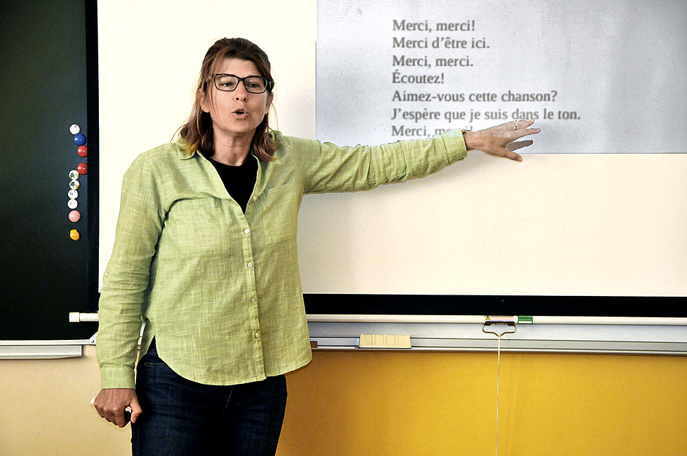 Franču valodu pie Baibas apgūst 5.–11. klašu skolēni. «Ir stundas, kur soli ir piepildīti, bet ir arī tādas, kurās pustukši. Pašā pirmajā stundā katram skolēnam vaicāju, kāpēc izvēlējās mācīties tieši franču valodu, un atbildes bija dažādas – «mamma lika», «gribēju pamēģināt», «patīk franču valoda», «labi zinu angļu un krievu valodu, gribu iemācīties vēl vienu svešvalodu».»