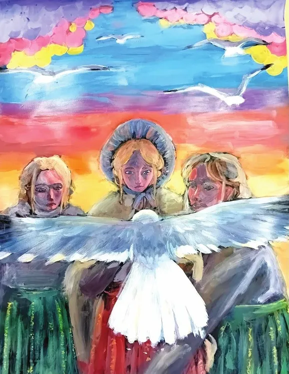 Pedagoģe atzīst, ka Marta bija izvēlējusies grūtu sižetu. «Tēma bija ļoti smaga, saistībā ar karu, kas notiek Centrāleiropā. Martas darbs bija diezgan traģisks – trasējošas lodes, ieroči, cilvēki, kas krīt, un virspusē tas baltais – kā milzīgs miera balodis, kas sargā cilvēkus un tautu. Bija fantastiska, lieliska ideja, traģiska kompozīcija, kas bija tīri viņas ideja,» tā S. Pansova.