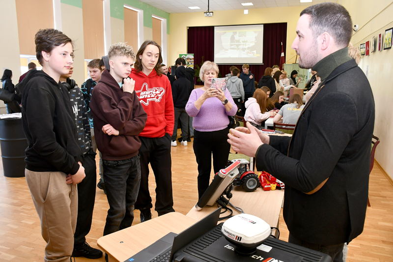 Lielākais pulks puišu sanāca pie galda ar traktoriem un laukapstrādes navigācijas iekārtām. 1.kursa audzēknis Roberts Andris Bitainis «Bauskas Dzīvei» demonstrēja, kā izmantojama precīzās izsējas iekārta, ar kuru vada traktoru un minerālmēslu izkliedēšanas agregātu. Pedagogi Dagnis Dārznieks un Ivars Straņķis izskaidroja mācību procesu un izrādīja jauniešiem tehnisko angāru.