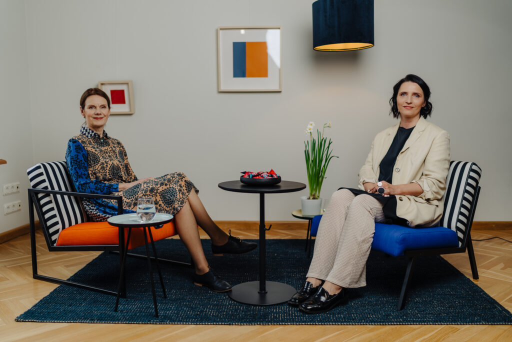Ar Latvijas Universitātes profesori un psiholoģi Baibu Martinsoni sarunājas Latvijas Vecāku organizācijas vadītāja Inga Akmentiņa-Smildziņa. Foto: Artūrs Ķipsts.