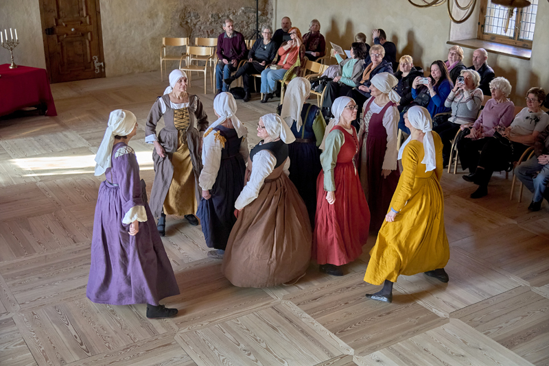 Pēc sarīkojuma informatīvās daļas Bauskas pils muzeja seno deju grupa «Galms» demonstrēja deju, kas iestudēta vadoties pēc Pītera Brēgeļa Vecākā gleznas, kurā attēlotas zemnieku kāzas. Tad apmeklētāji kopā ar pasākuma vadītāju S. Dručku devās uz hercogienes guļamistabu, lai redzētu gultas klāšanas attēlojumu pa kārtām – no salmu maisiem līdz spilveniem.