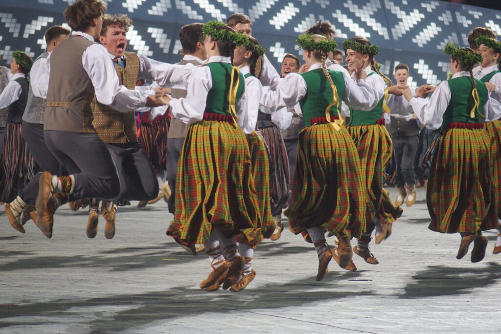Latvijas novadu krāsas koši iemirdzas deju lieluzvedumā “Mūžīgais dzinējs”, kas iecerēts kā veltījums izziņas kārei un mūžīgās izaugsmes meklējumiem, dejās un stāstos atainojot dažādu laiku Latvijas apceļotāju pieredzēto, sajusto un secināto.