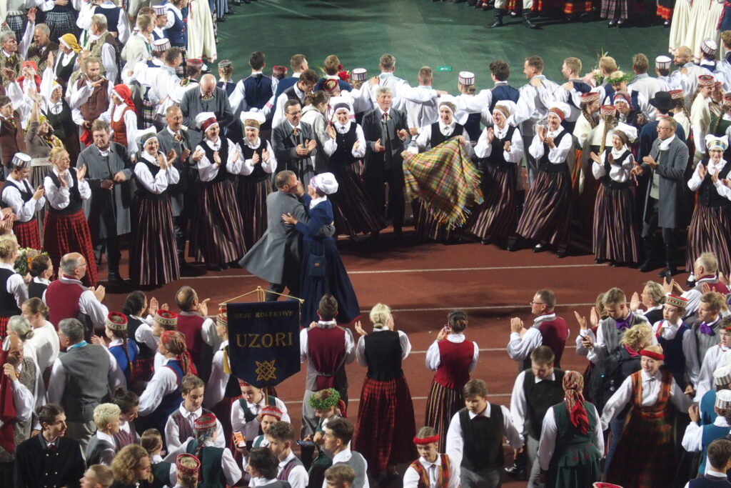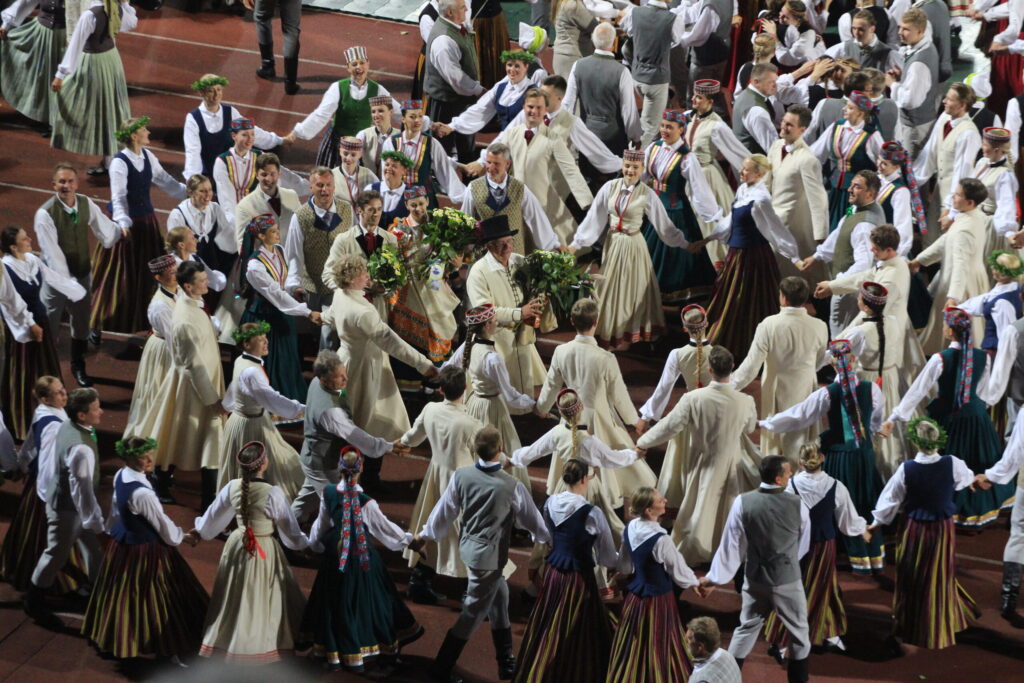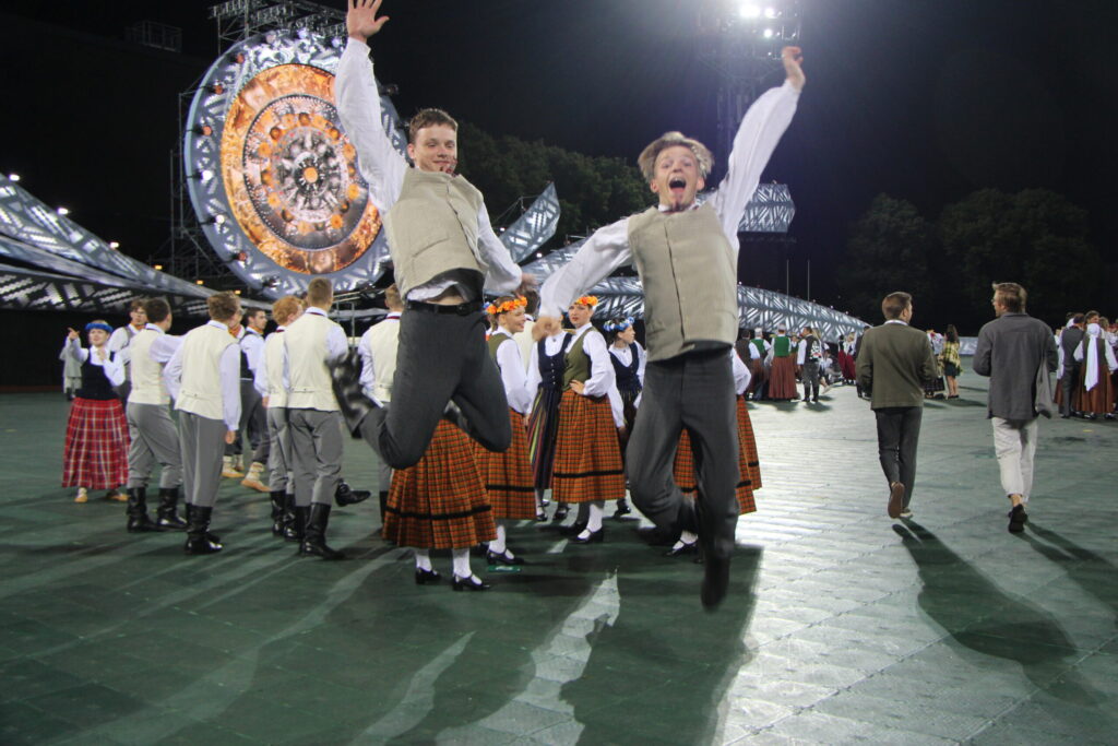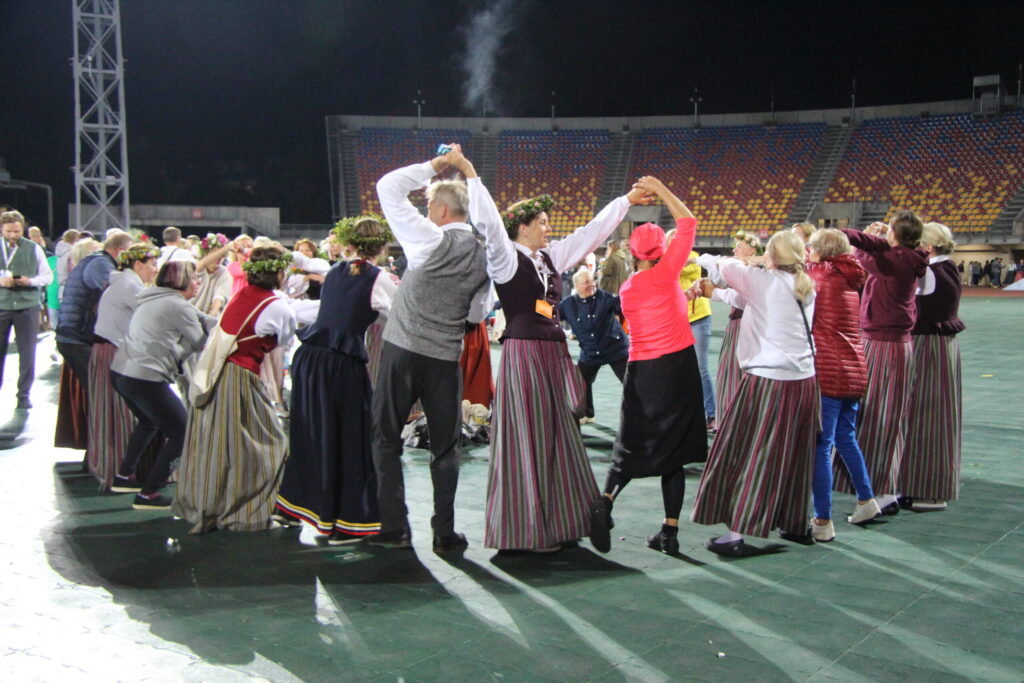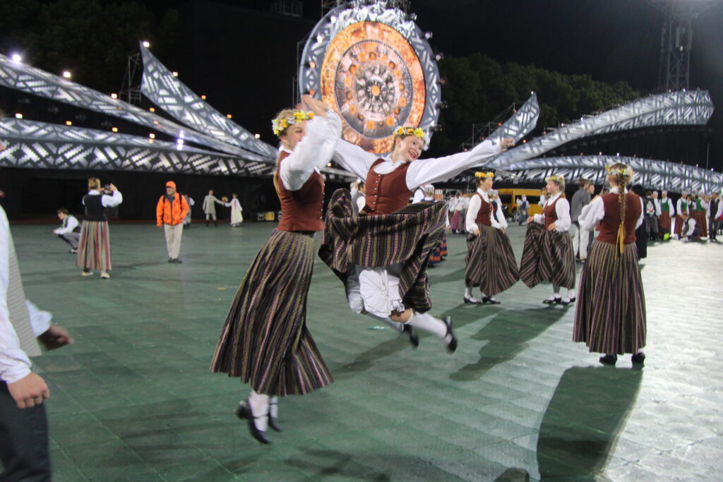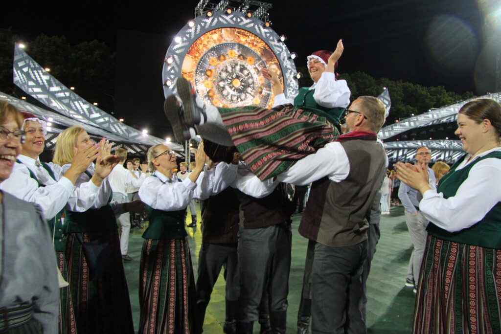 Latvijas novadu krāsas koši iemirdzējās deju lieluzvedumā “Mūžīgais dzinējs“, tā noslēdzošais pasākums notika Daugavas stadionā 8. jūlijā plkst. 22, pēc kura sekoja Svētku dalībnieku balle, kurā lustējās arī Bauskas novada kolektīvi.