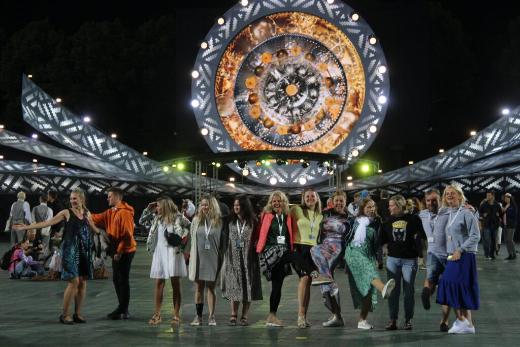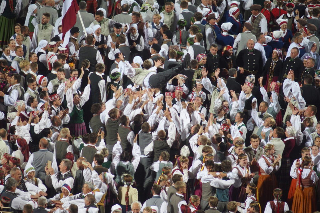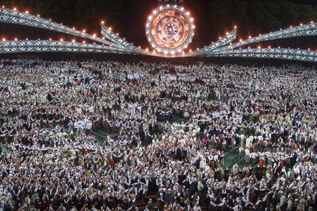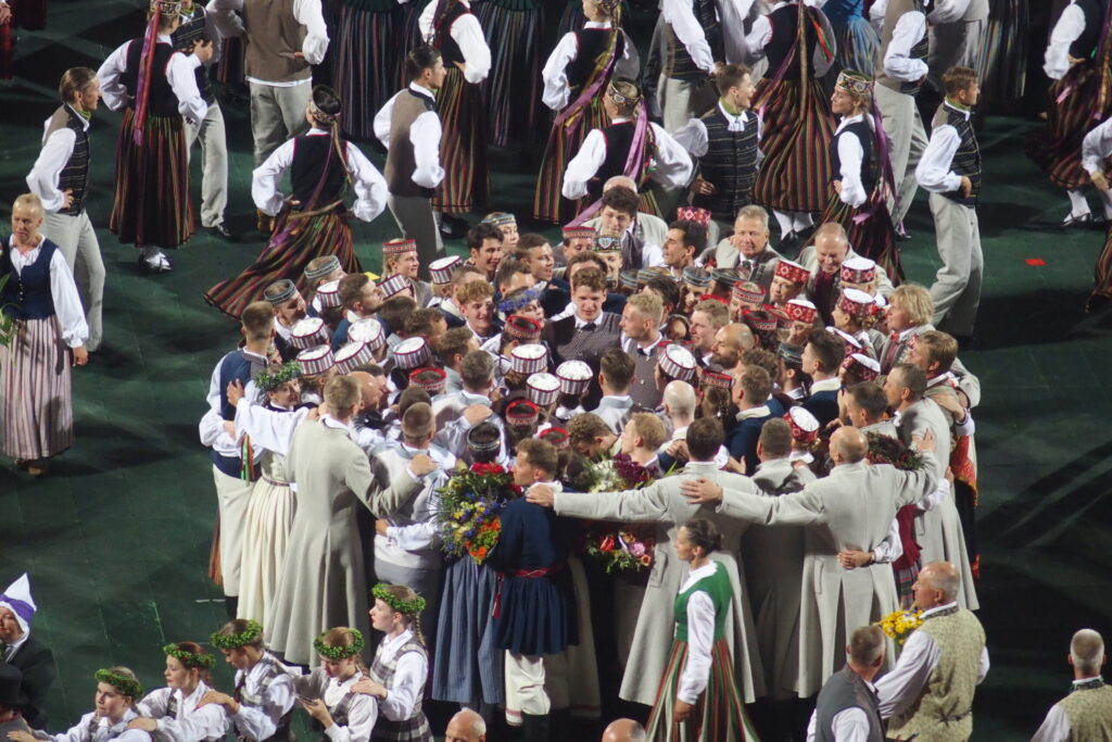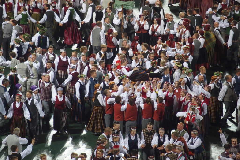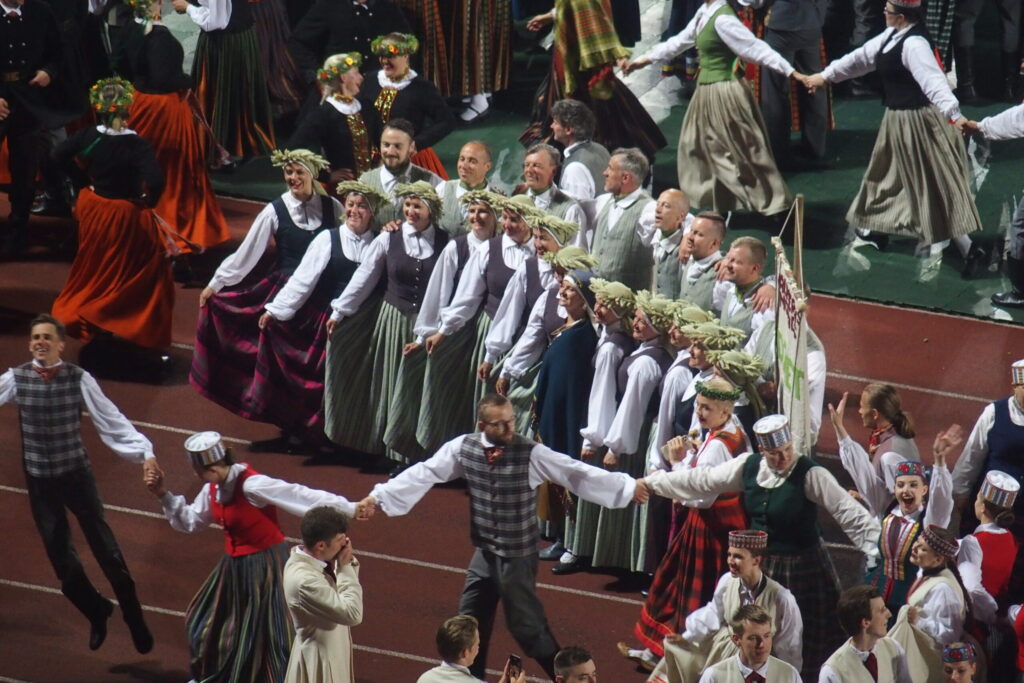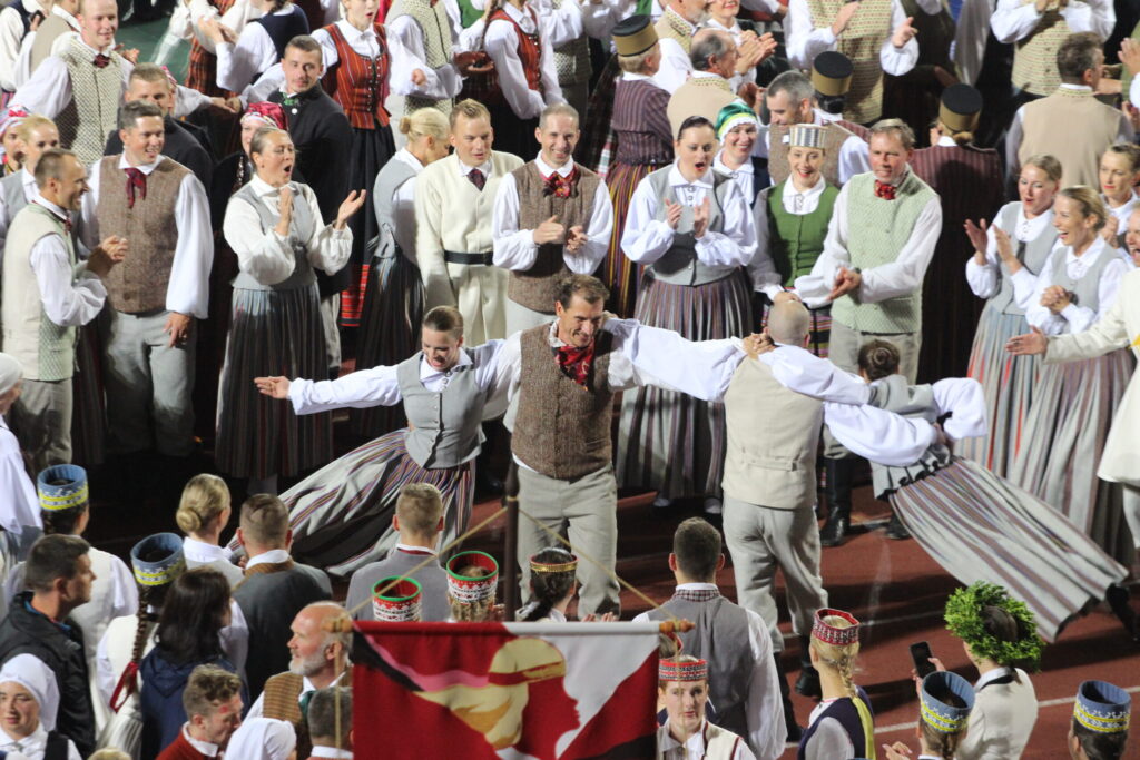 Latvijas novadu krāsas koši iemirdzējās deju lieluzvedumā “Mūžīgais dzinējs“, tā noslēdzošais pasākums notika Daugavas stadionā 8. jūlijā plkst. 22, pēc kura sekoja Svētku dalībnieku balle, kurā lustējās arī Bauskas novada kolektīvi.