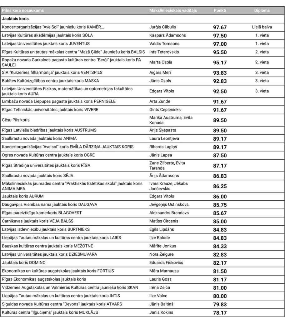 Vakar, 1. jūlijā, visas dienas garumā Latvijas Universitātes Lielajā aulā un Rīgas Latviešu biedrības namā notika koru konkursa fināls, kurā par Lielo balvu sacentās 33 jauktie kori, 11 sieviešu kori, 7 vīru kori un 4 senioru kori, informē Nacionālais kultūrais centrs. Jaukto koru vidū arī Bauskas kultūras centra jauktais koris «Mežotne» (mākslinieciskā vadītāja Mārīte Jonkus), bet starp sieviešu koriem – Vecumnieku tautas nama sieviešu koris «Via Stella» (mākslinieciskā vadītāja Liene Batņa).