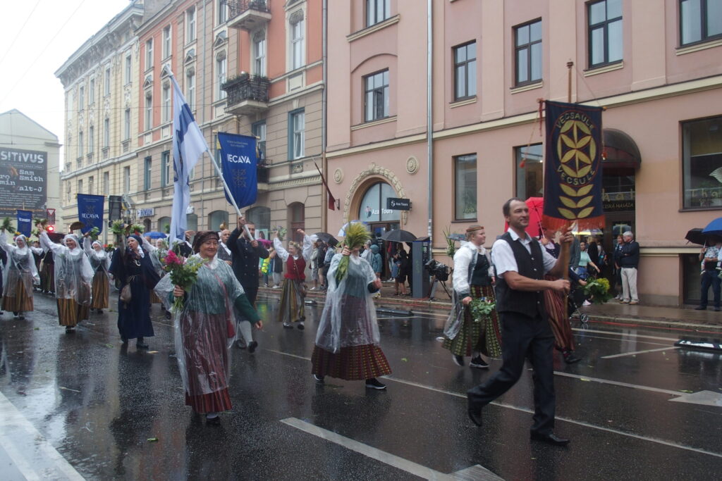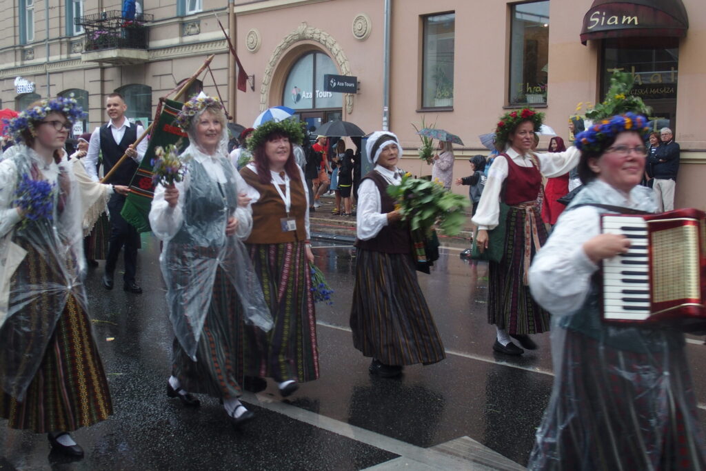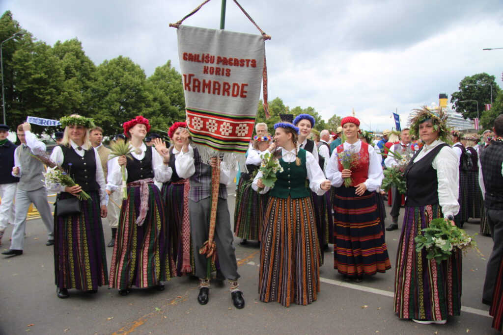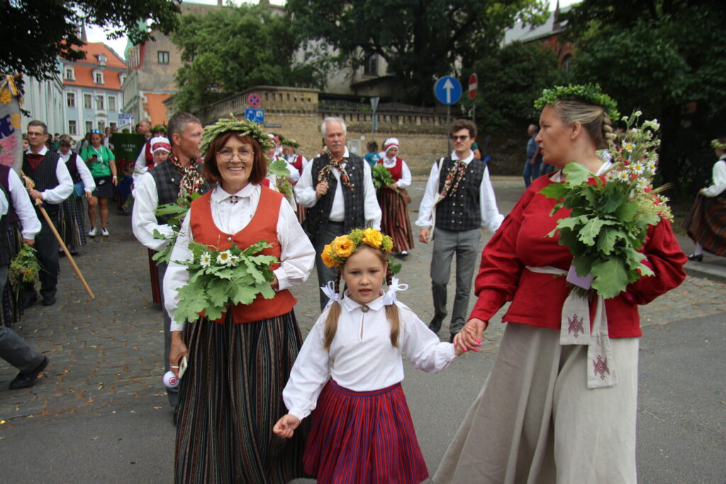 “Novadu dižošanās” – tā nosaukts svētku gājiens, un te nu patiešām katrs no kolektīviem centās sevi parādīt, cik vien braši var.