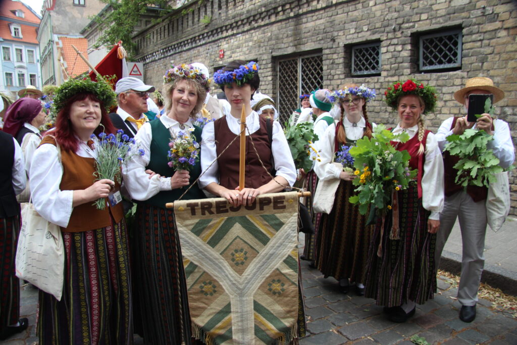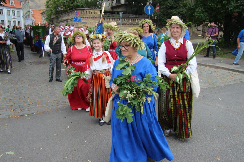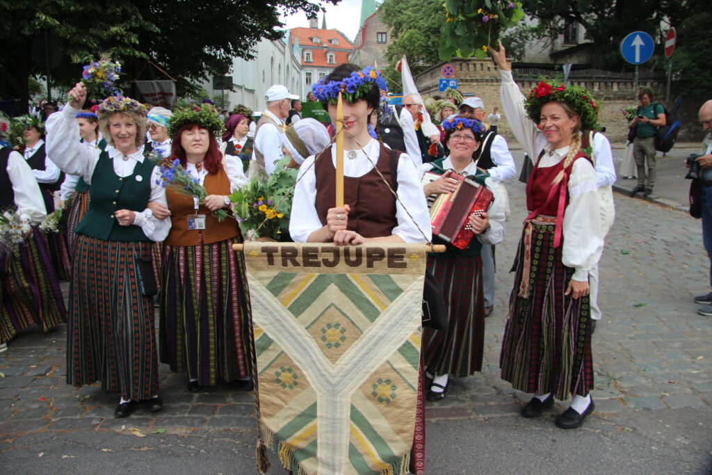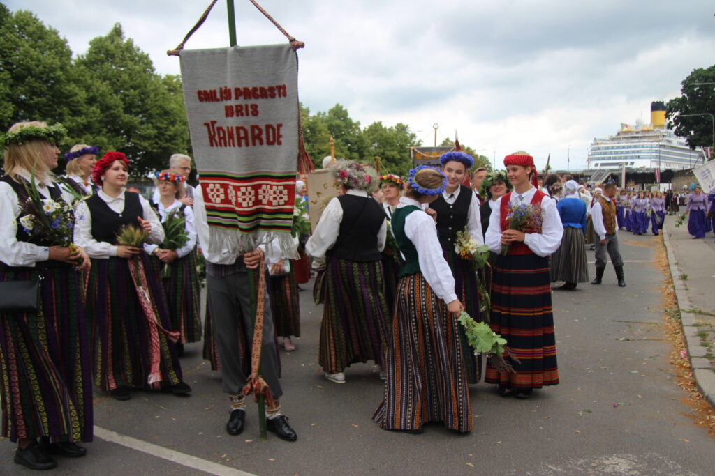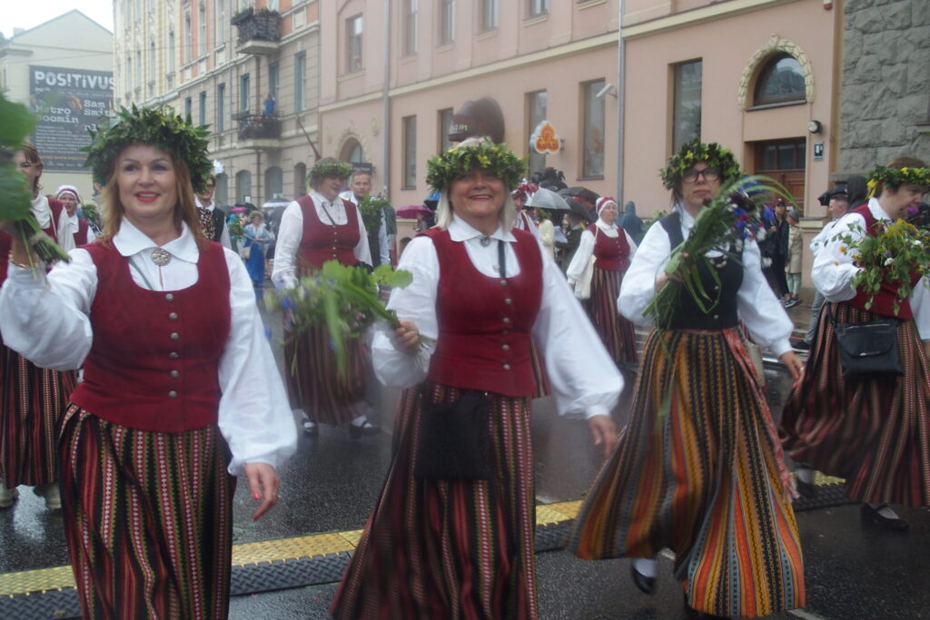 “Novadu dižošanās” – tā nosaukts svētku gājiens, un te nu patiešām katrs no kolektīviem centās sevi parādīt, cik vien braši var.